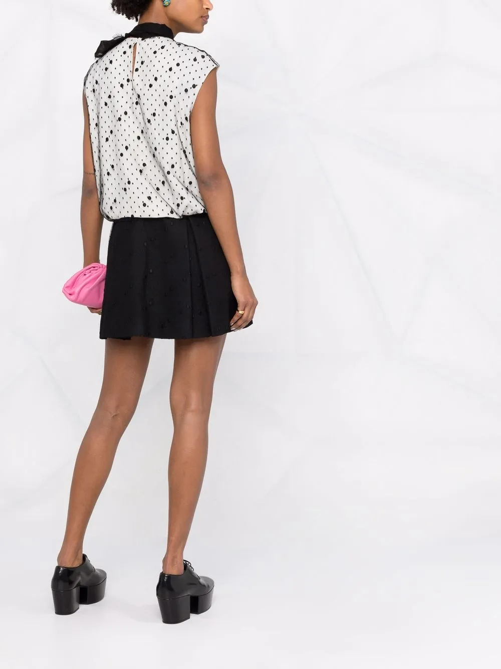Коллекция Valentino Ready To Wear, воротник с бантом, многослойный дизайн, плиссированная юбка, застежка на пуговицы сзади и без рукавов.
