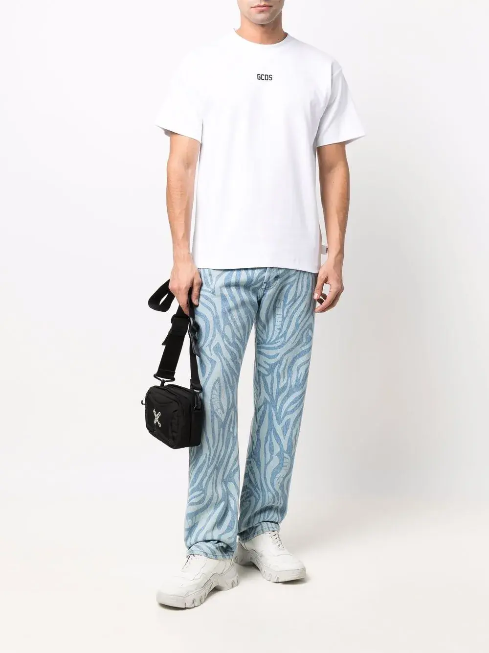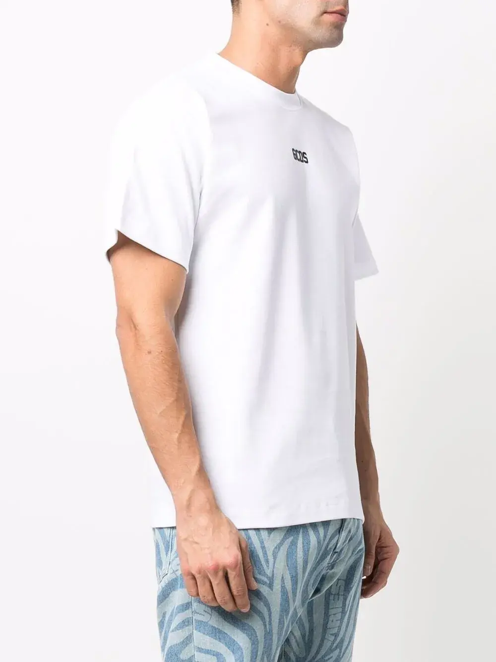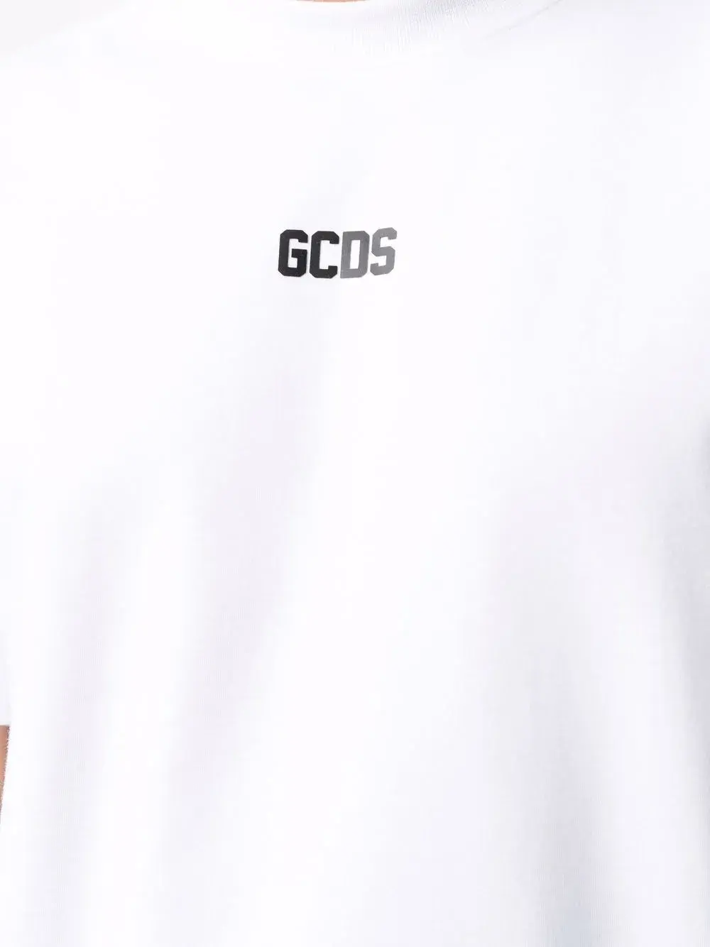 Круглый вырез, логотип спереди, короткие рукава и прямой подол.