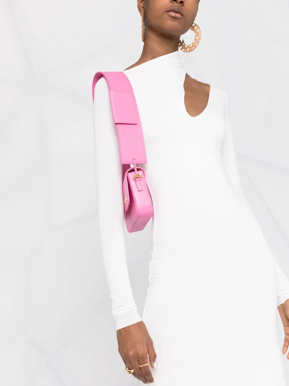 Однотонная расцветка, круглый вырез, вырезные детали и длинные рукава. Цвет: белый.
