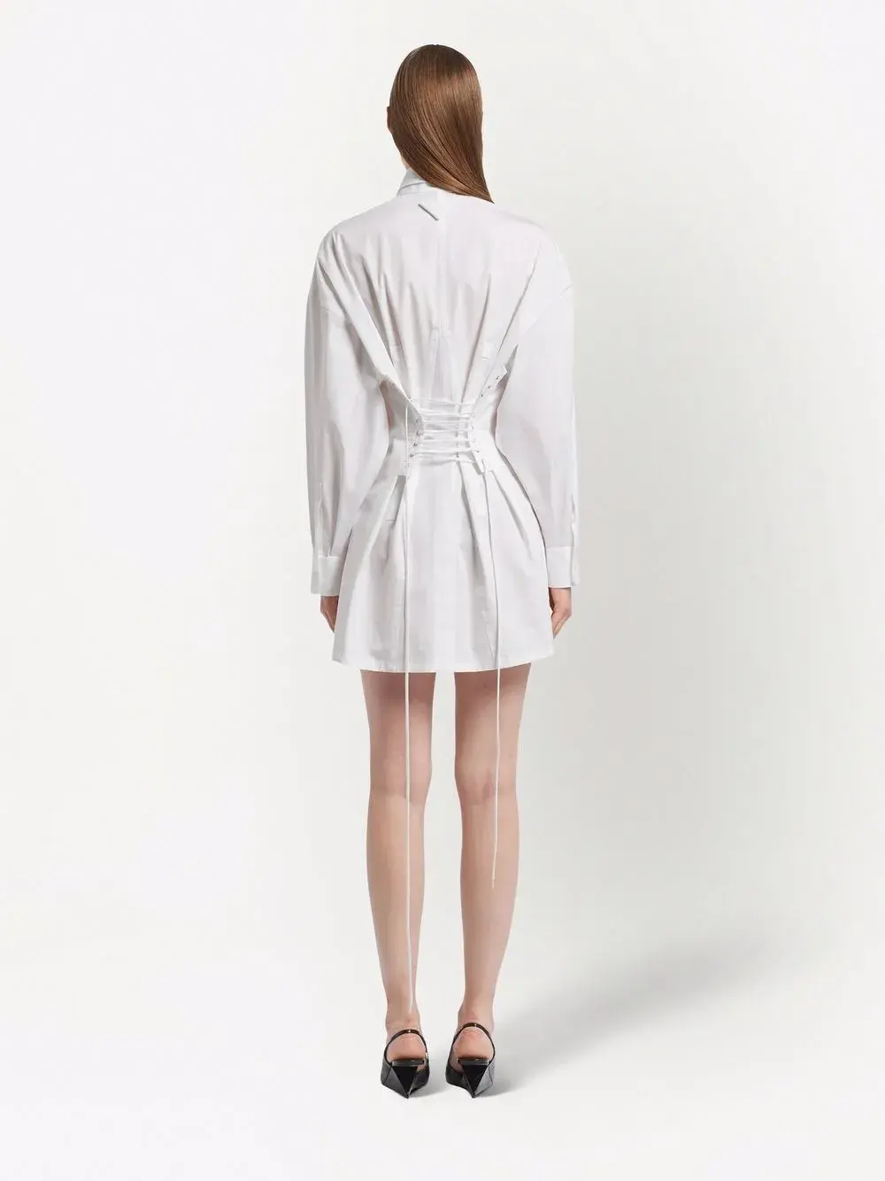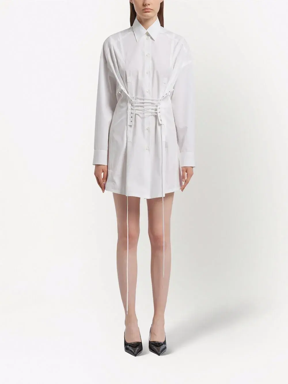Платье-рубашка со шнуровкой Prada, белый