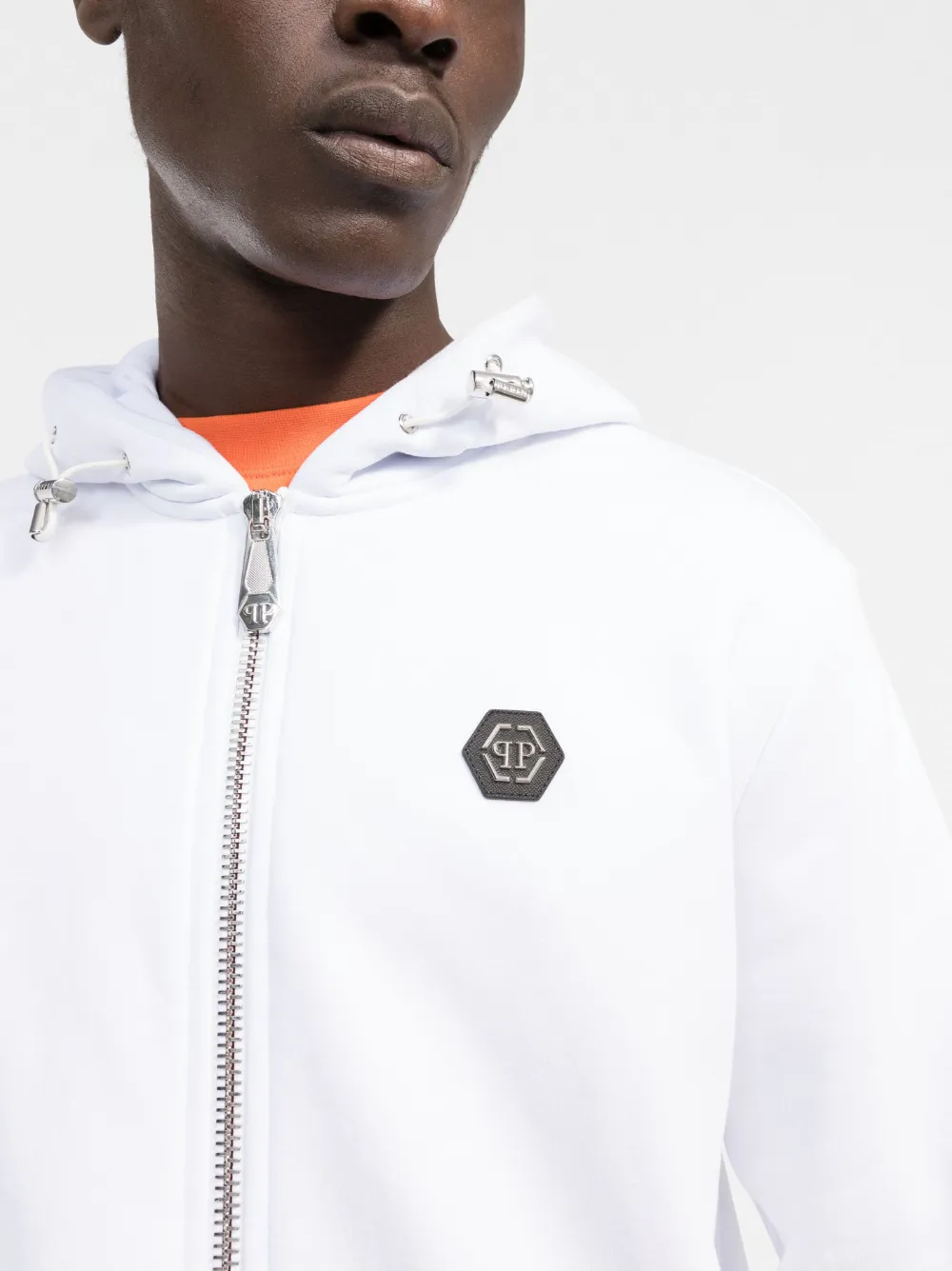 Худи на молнии с логотипом Skull Philipp Plein, белый