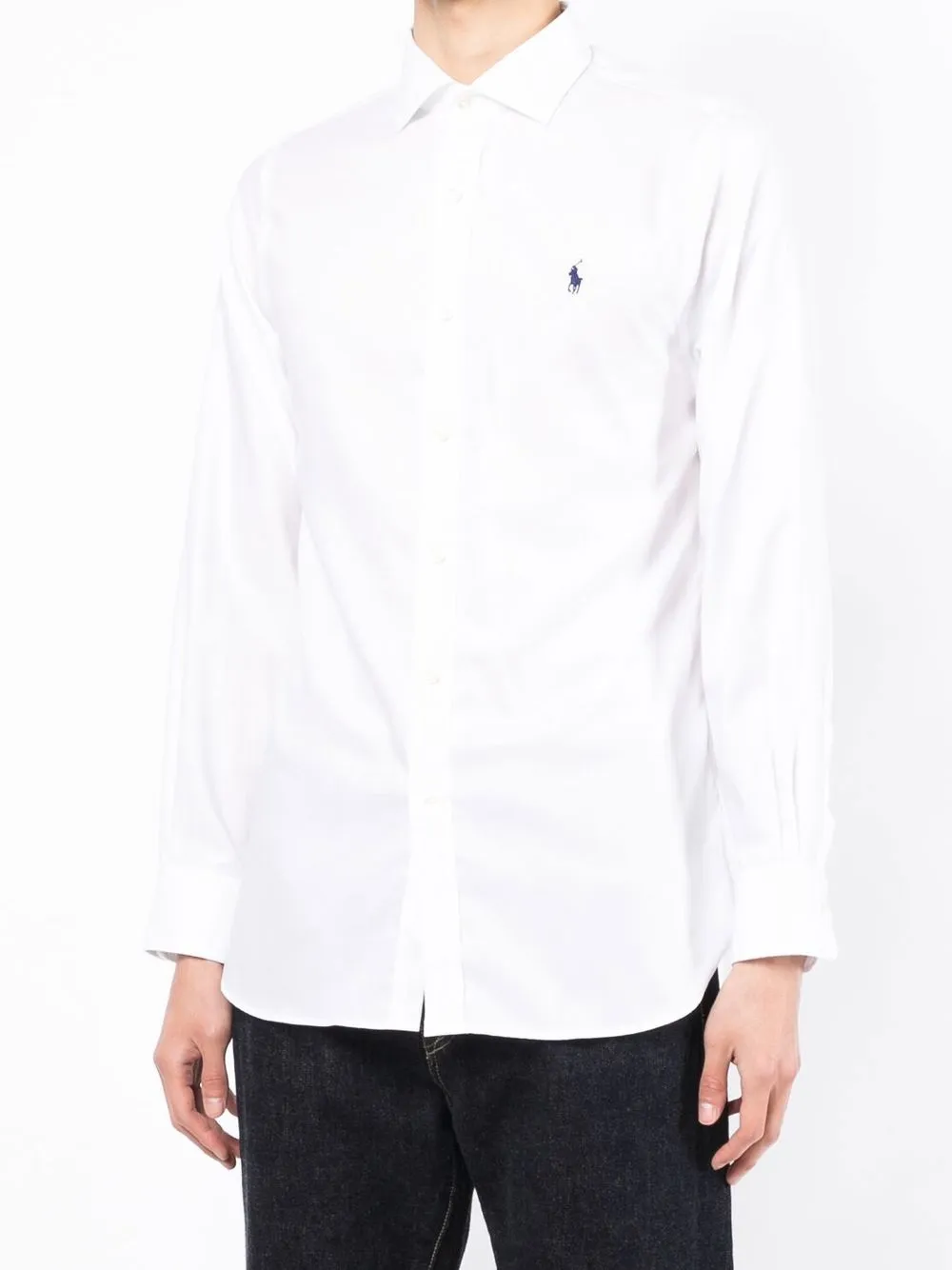 Белый, хлопок, классический воротник, застежка на пуговицах спереди, знаковый логотип Polo Pony, длинные рукава, манжеты на пуговицах и закругленный подол.