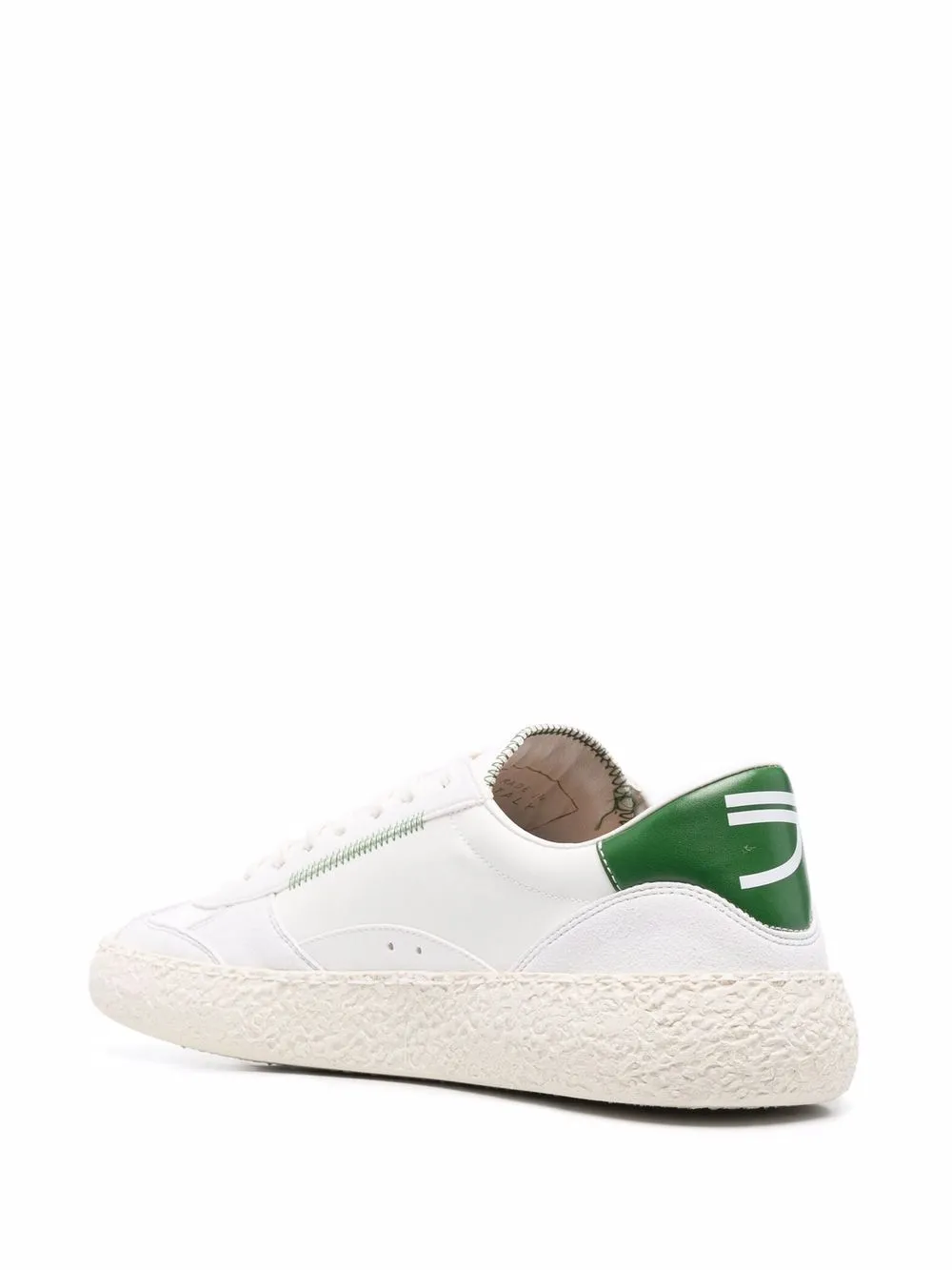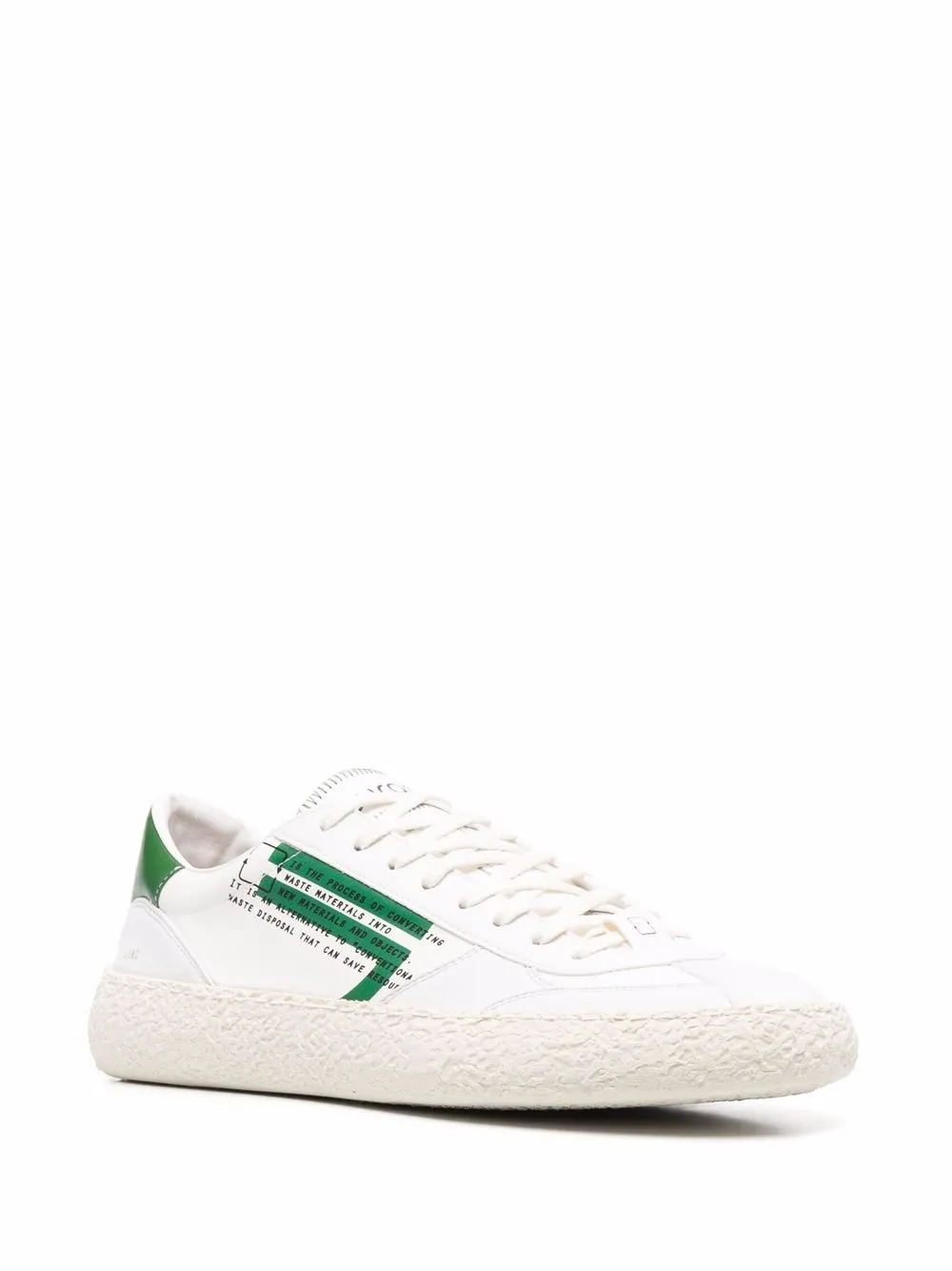 Принт с надписью сбоку, язычок с логотипом, шнуровка спереди, закругленный носок, плоская резиновая подошва и стелька с логотипом.