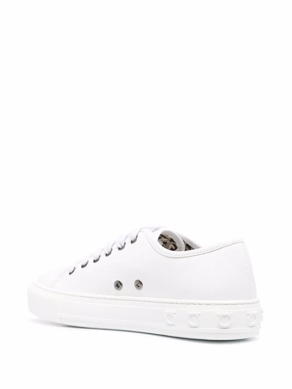 Тисненый логотип сбоку, закругленный носок, шнуровка спереди, стелька с логотипом и массивная резиновая подошва. Цвет: белый.