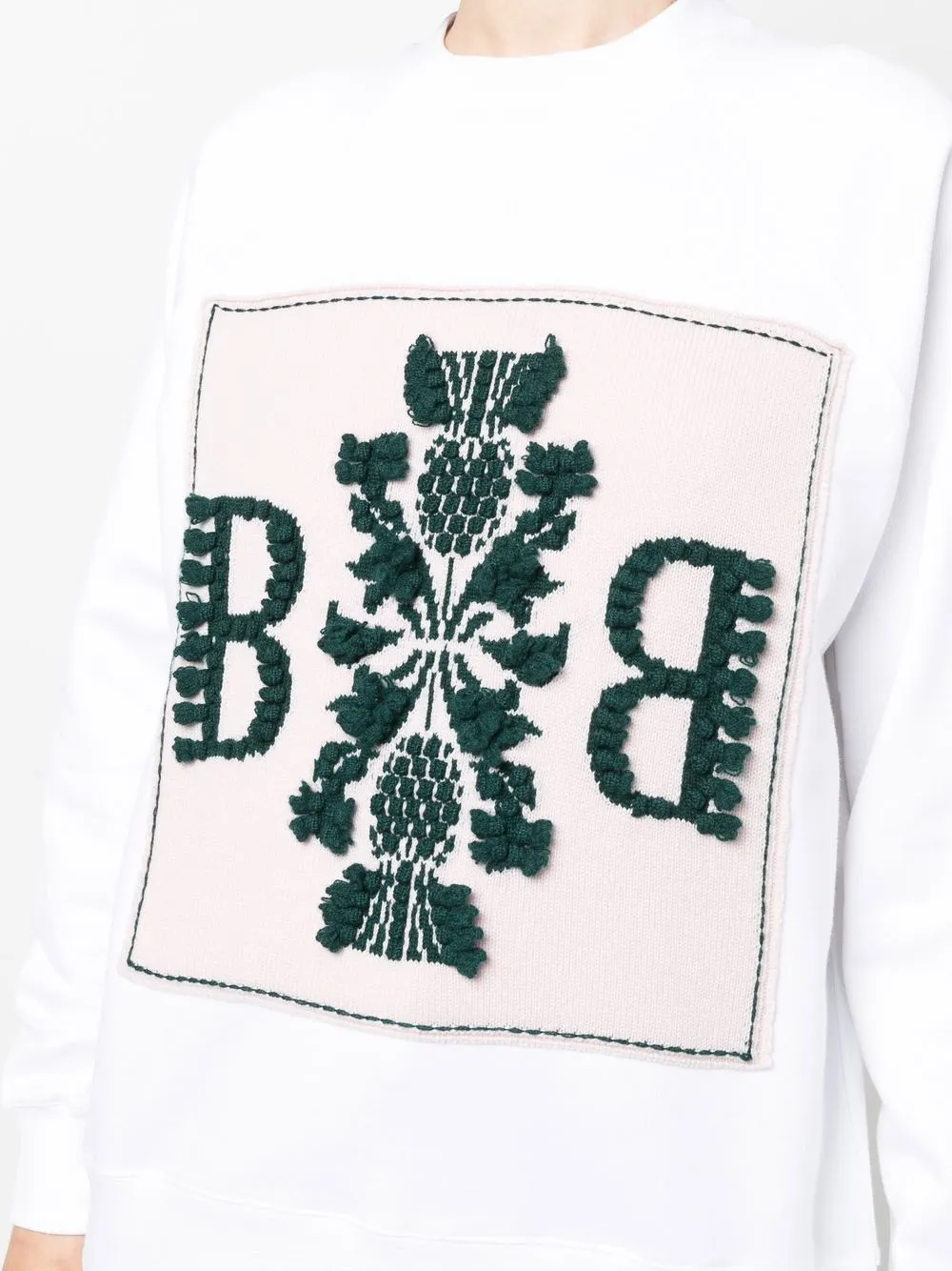 Нашивка с логотипом спереди, круглый вырез, длинные рукава, рукава с узкими манжетами и прямой подол. Цвет: белый.