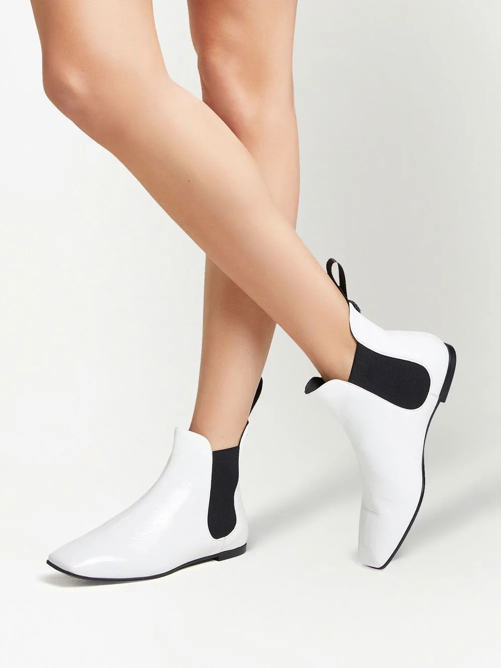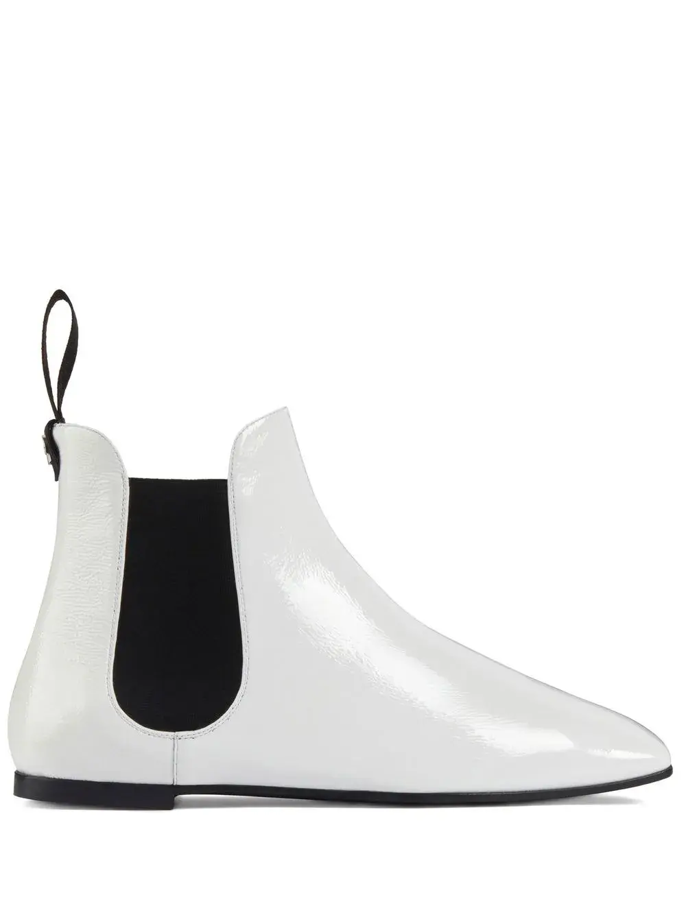 Цвет: белый черный лакированная кожа контрастная отделка петля для подтягивания с логотипом эластичные боковые вставки квадратный носок высота по щиколотку плоская кожаная подошва