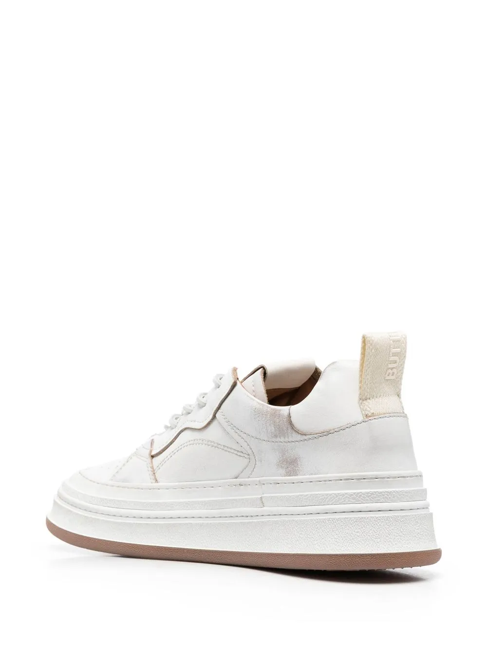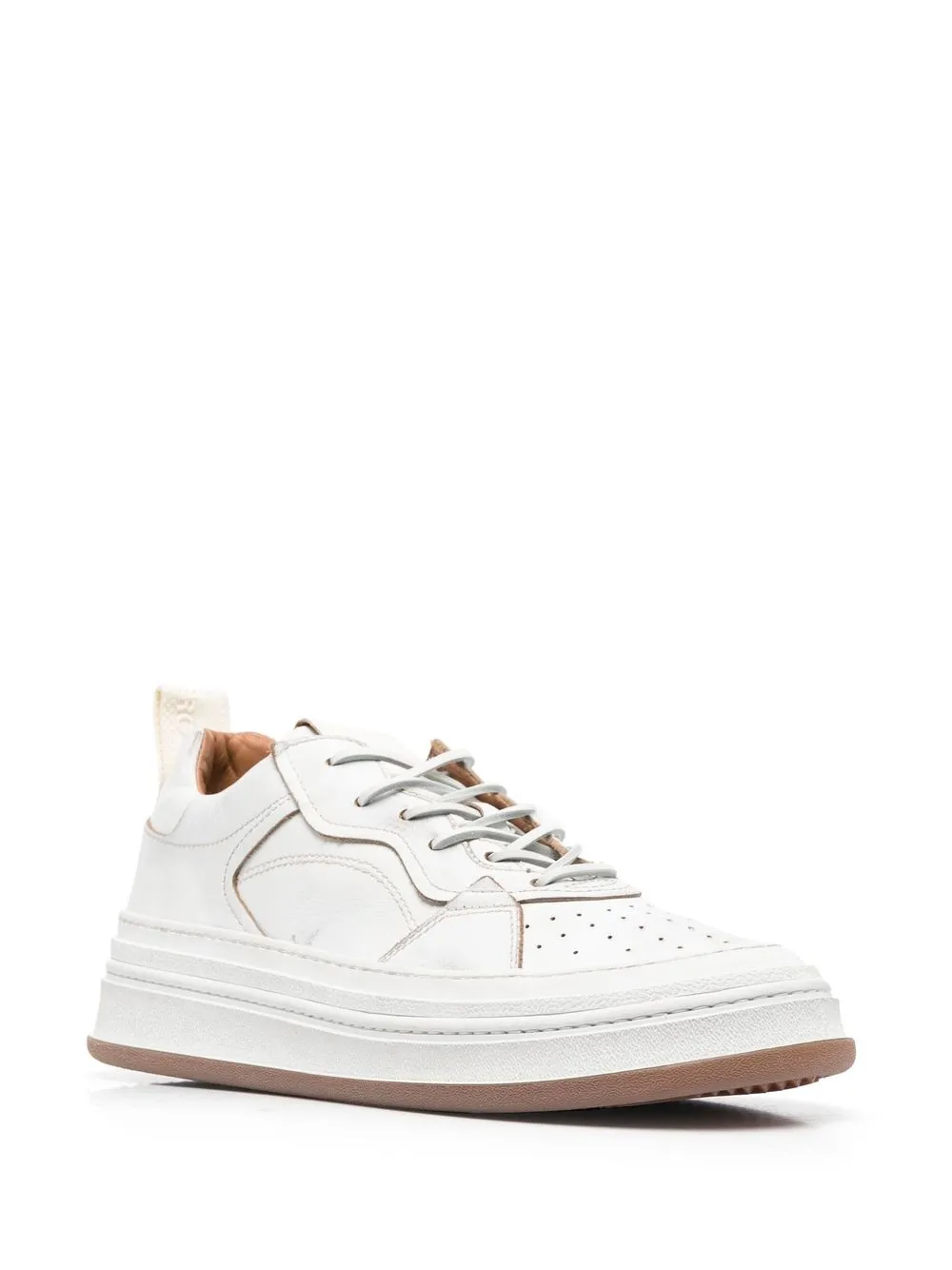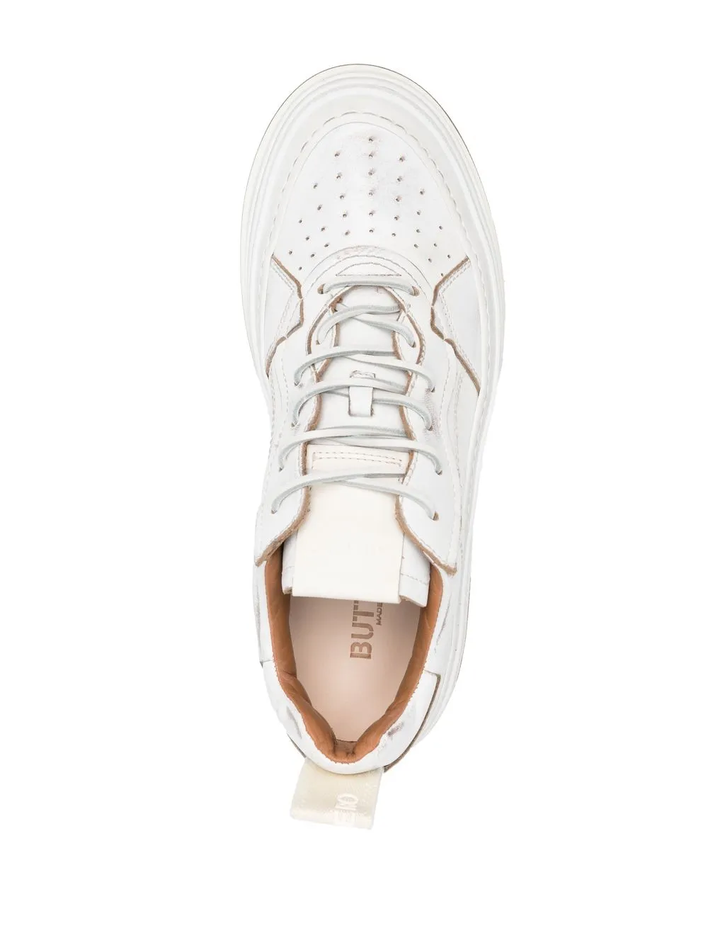 Кремовый, кожа, перфорированный носок, закругленный носок, шнуровка спереди, петля для подтягивания сзади и плоская резиновая подошва.