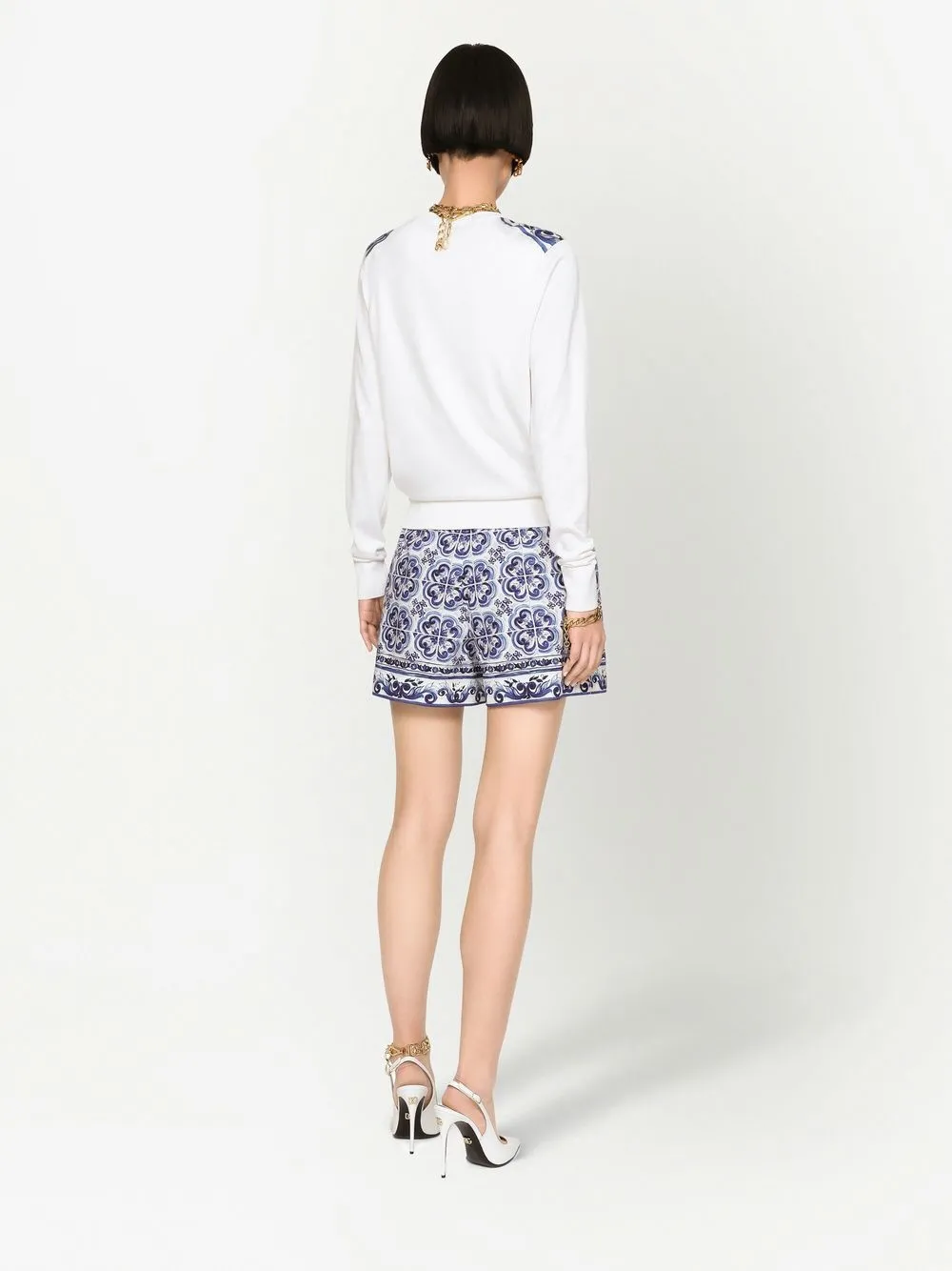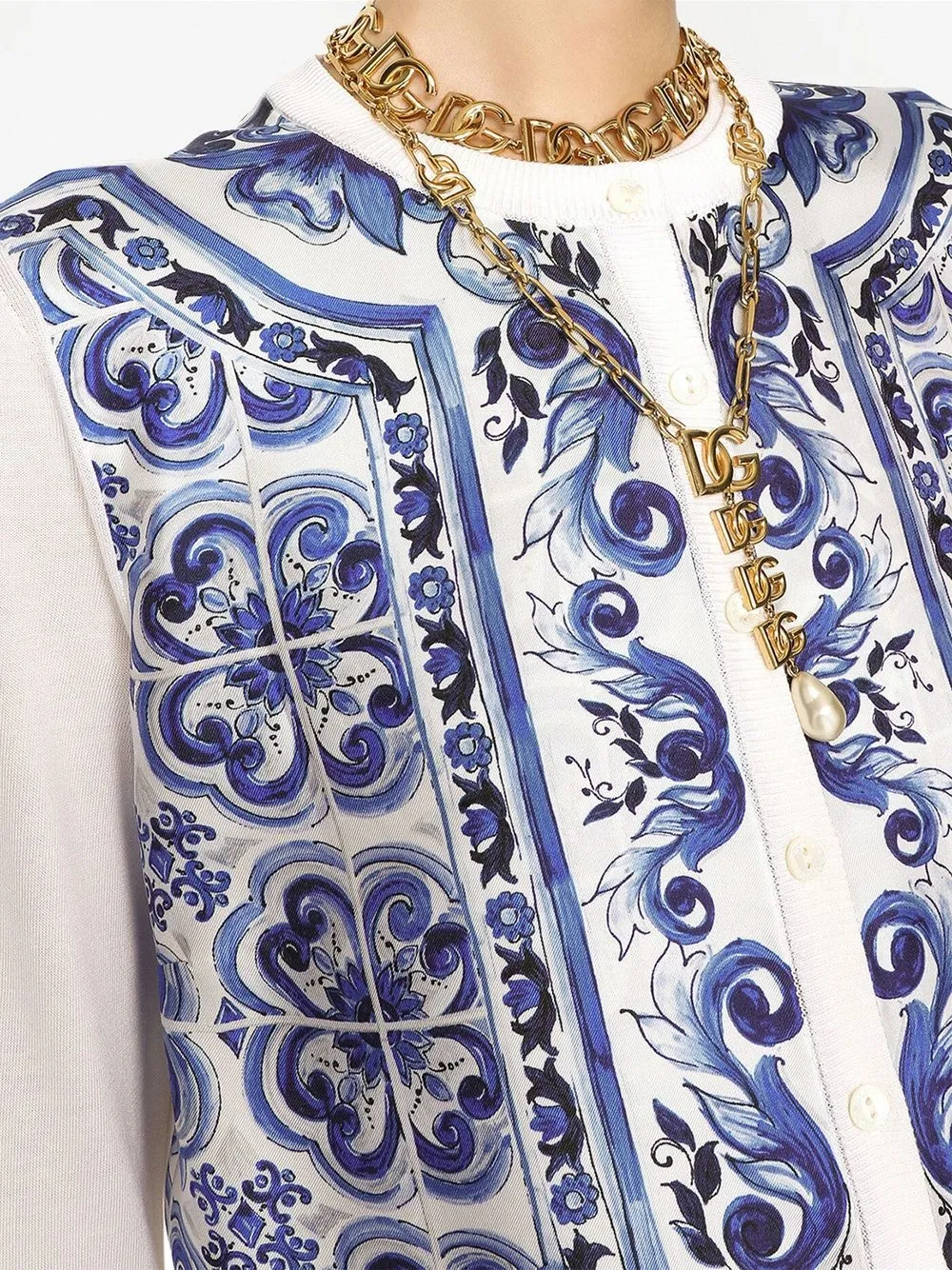 Шелковый кардиган с принтом Majolica DOLCE & GABBANA, белый