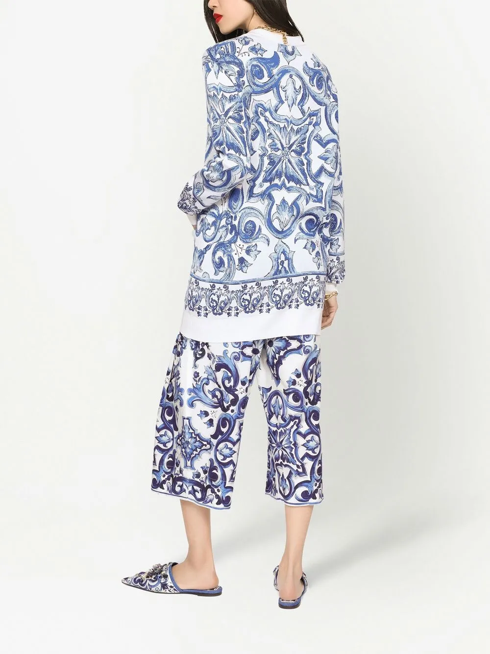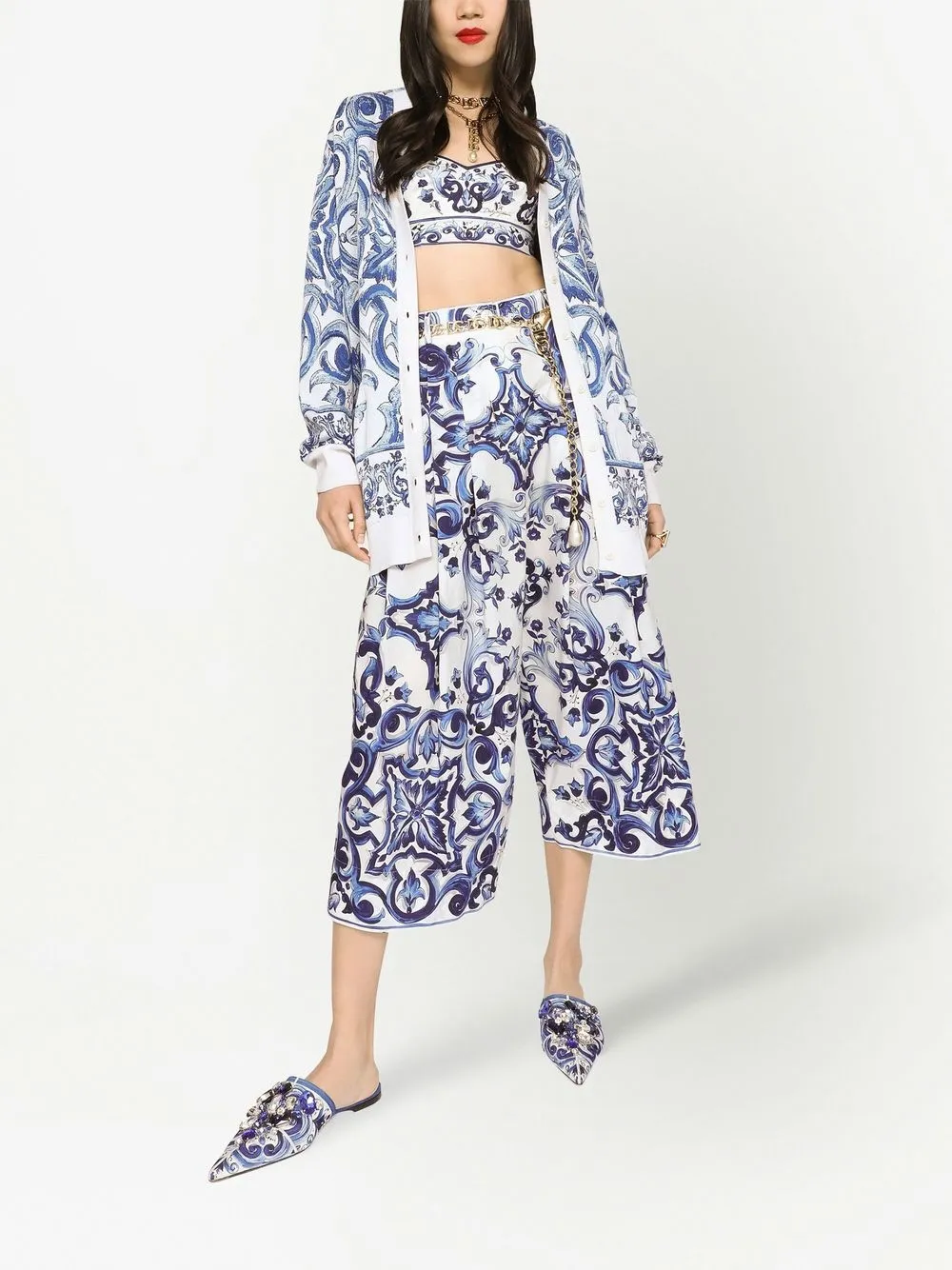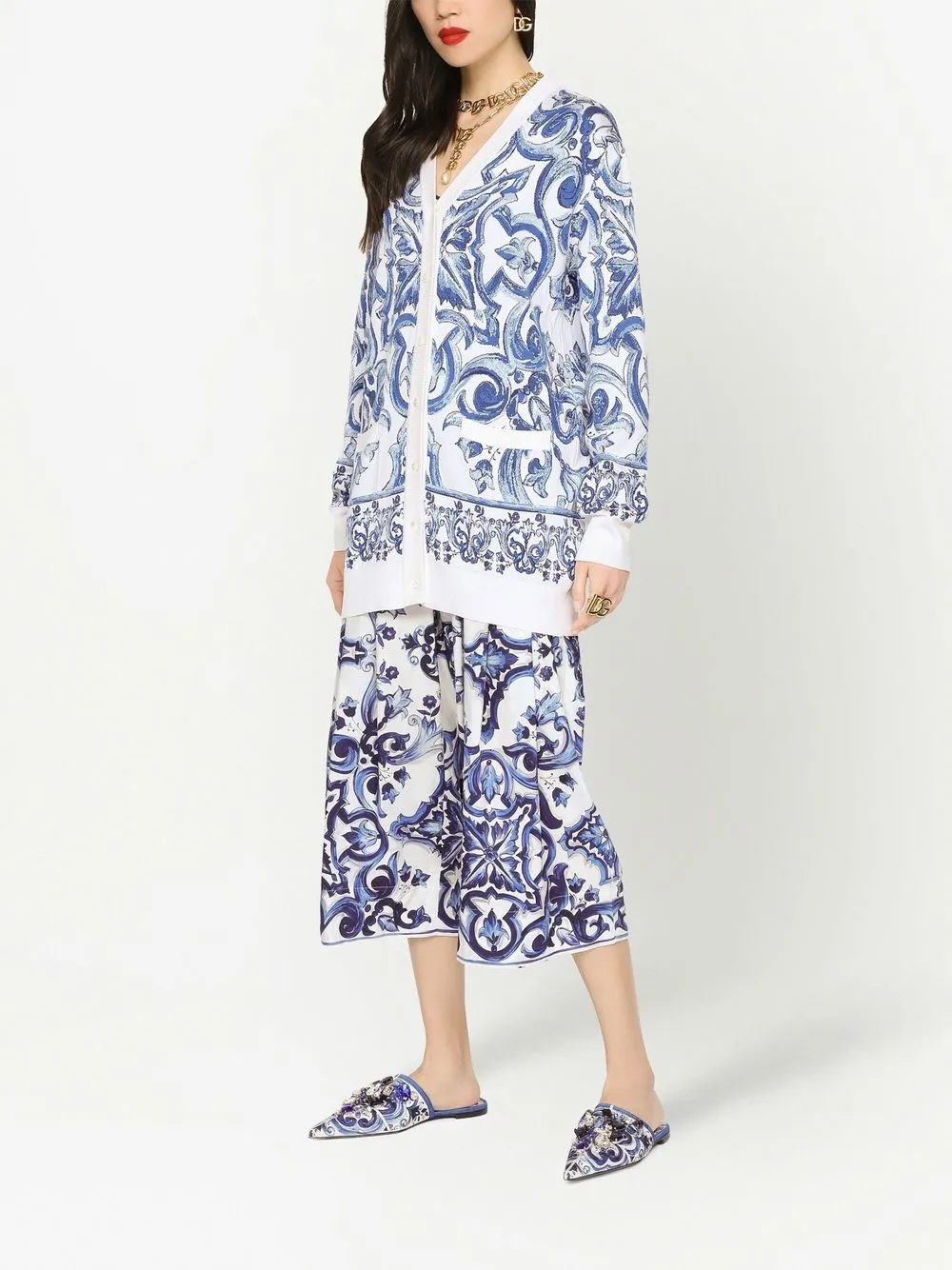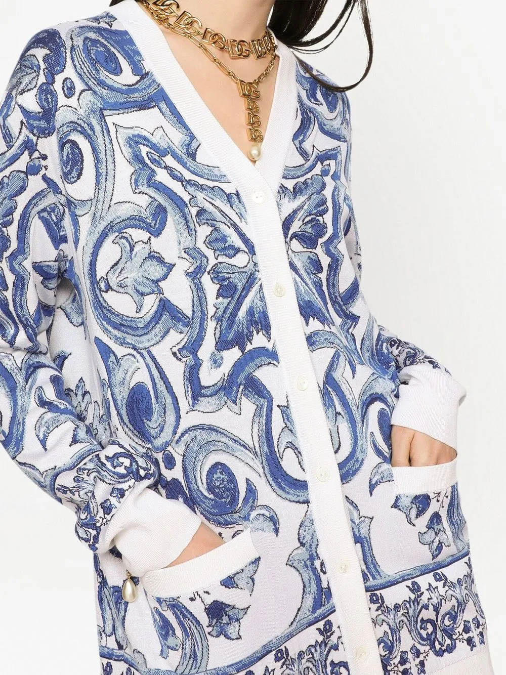 Шелковый кардиган с принтом Majolica DOLCE & GABBANA, белый