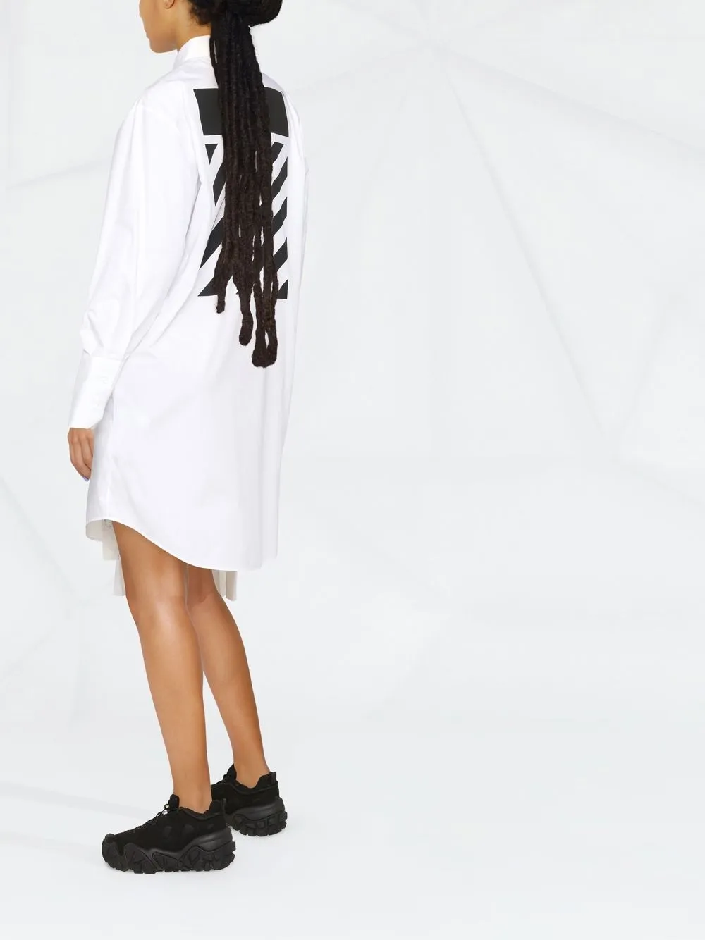 Платье-рубашка мини с плиссировкой и логотипом OFF-WHITE, белый 57 647₽