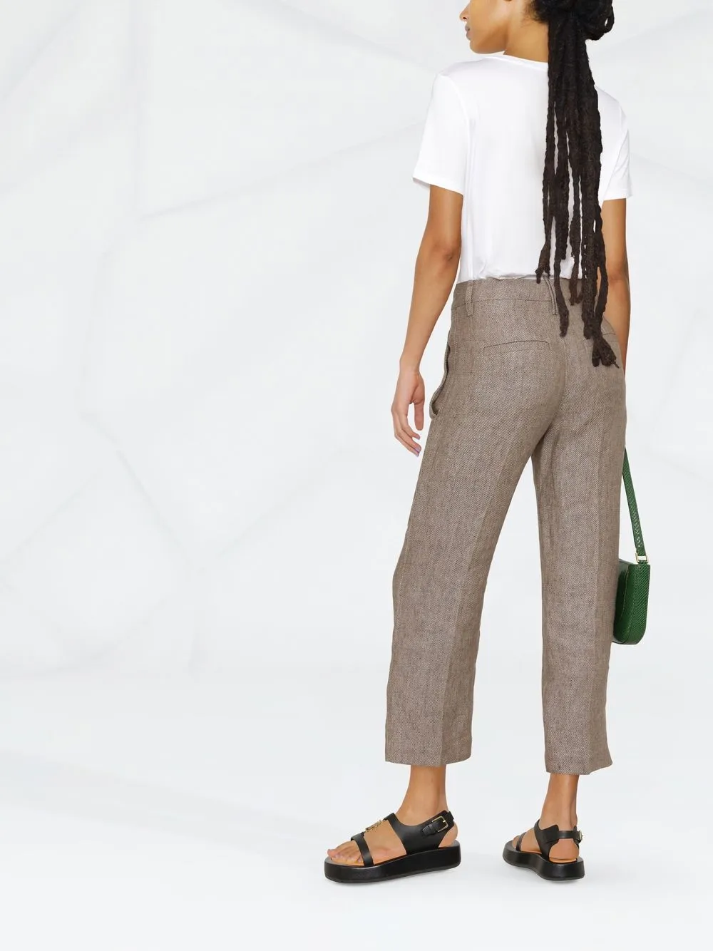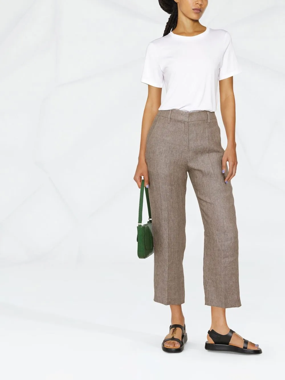 Белый, хлопок пима, круглый вырез, короткие рукава и прямой подол.