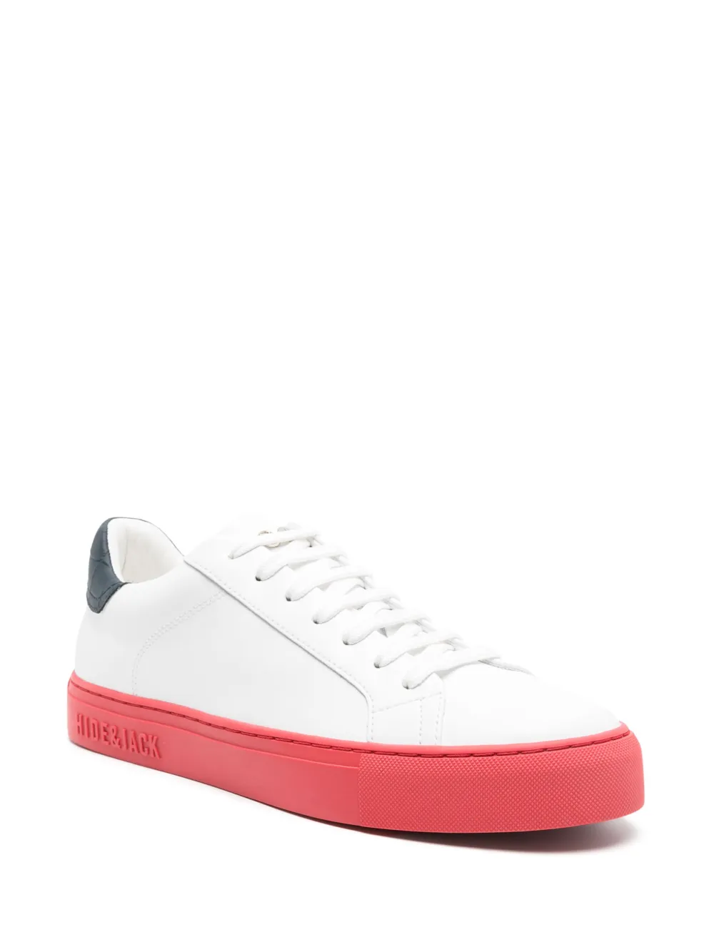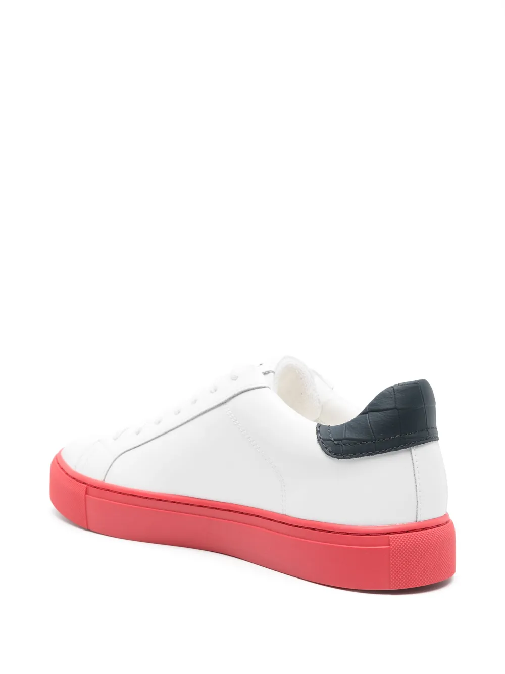 Белый, темно-синий, насыщенно-красный, кожа, закругленный носок, шнуровка спереди, нашивка с логотипом на язычке, контрастный задник и плоская резиновая подошва. .