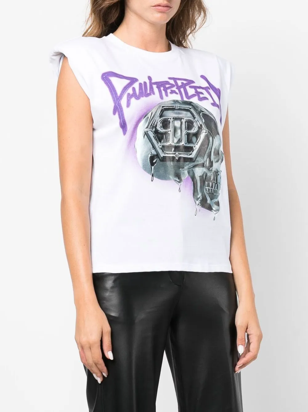 Топ с объемными плечами и принтом Skull Philipp Plein, белый