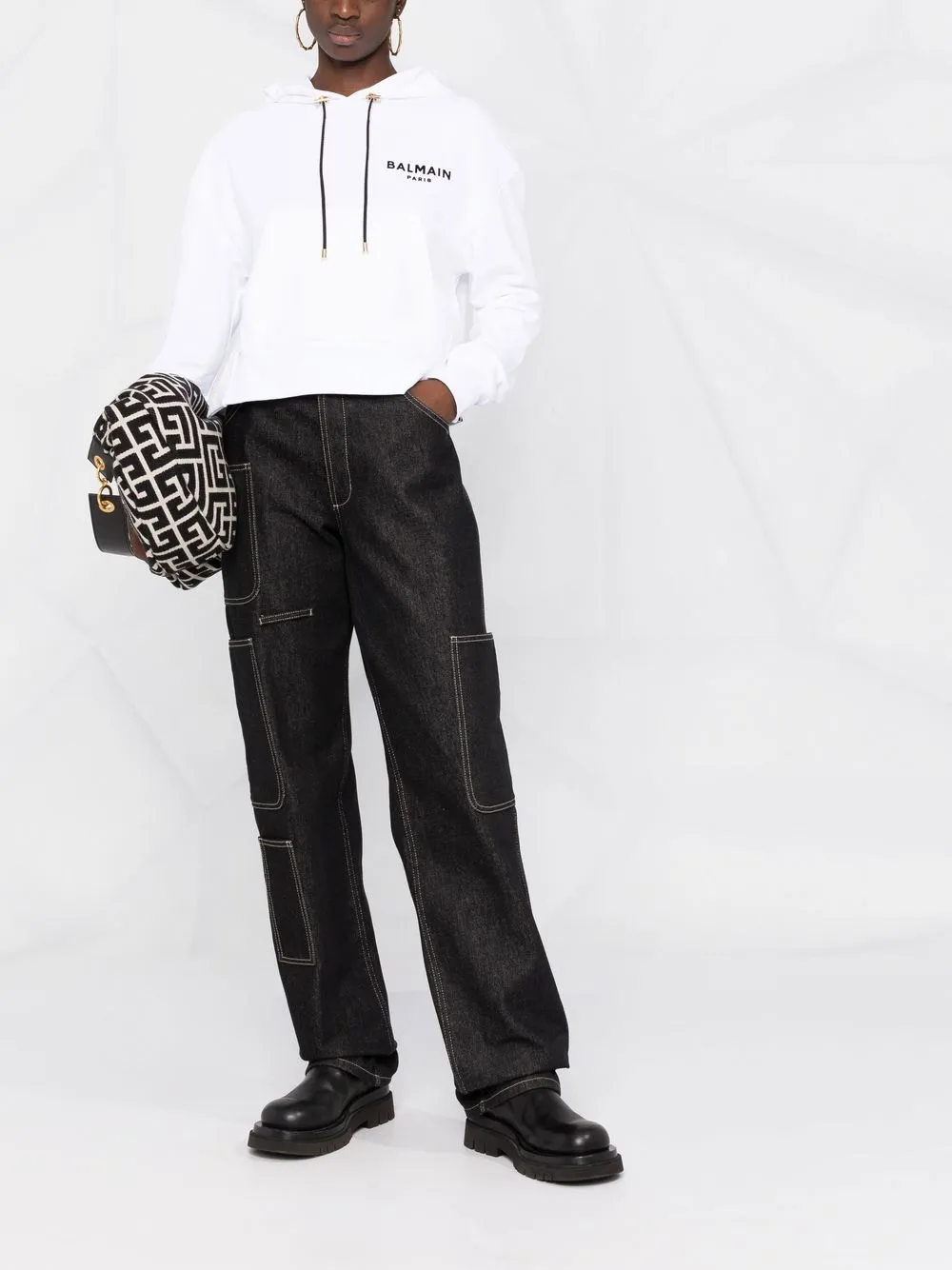 Худи с кулиской и логотипом BALMAIN, белый 55 033₽