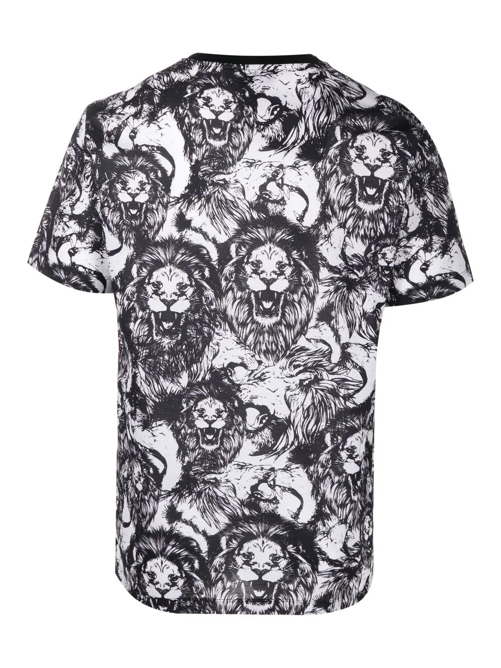 Черный/белый, хлопок, сплошной графичный принт, круглый вырез, короткие рукава и прямой подол.