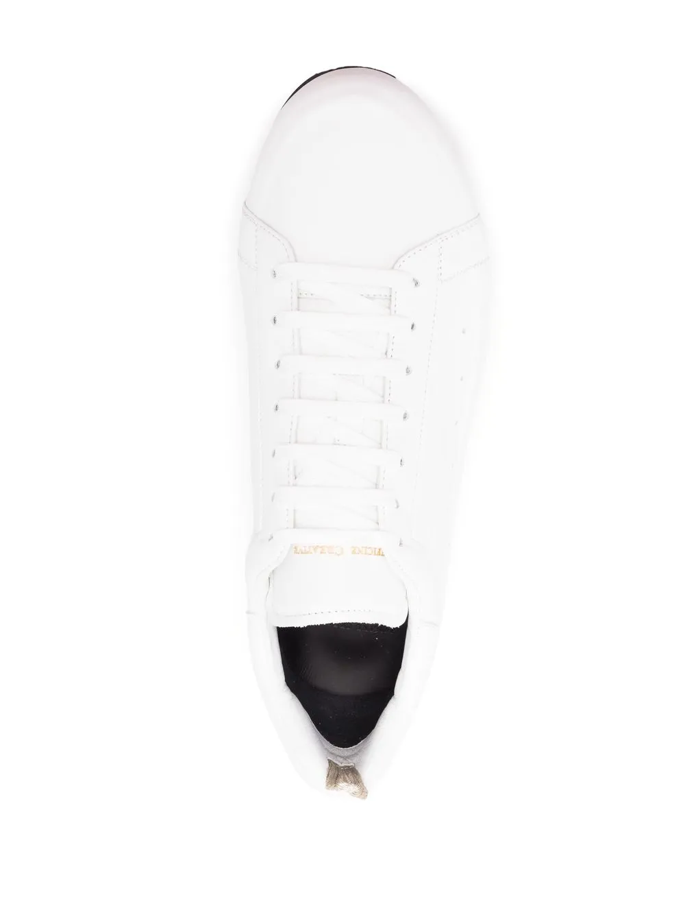 Кремовый, золотистый, телячья кожа, тисненый логотип на язычке, перфорация, тисненый логотип на язычке, закругленный носок, шнуровка спереди, стелька с логотипом, петля для подтягивания сзади и плоская резиновая подошва.