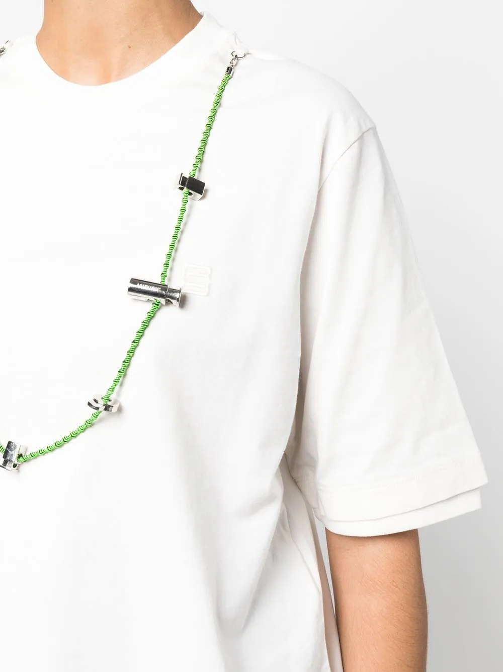 Белый, хлопок, цепочка, круглый вырез и короткие рукава.