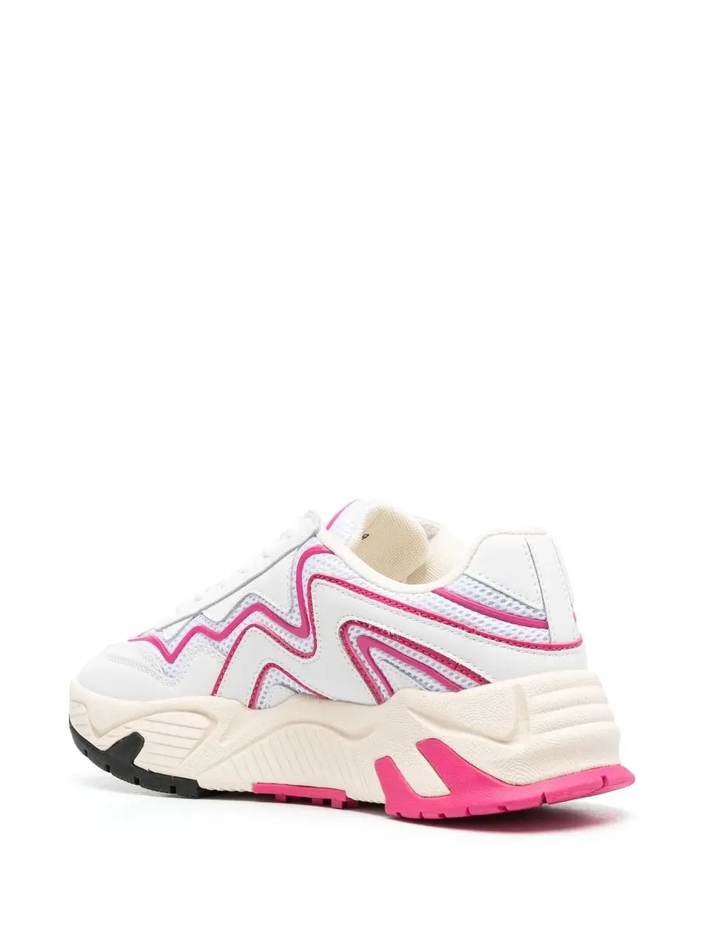 Расцветка Cloud White, розовый, телячья кожа, стиль колор-блок, закругленный носок, шнуровка спереди, нашивка с логотипом на язычке и подошва Vibram.