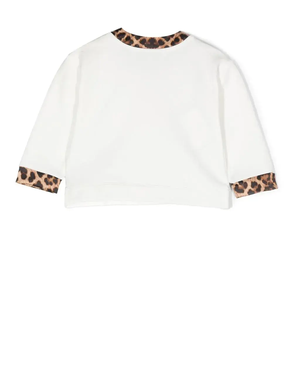 Белый, коричневый, эластичный хлопок, принт с изображением плюшевого медведя, логотип спереди, круглый вырез, длинные рукава, контрастные манжеты, леопардовый принт и прямой подол.