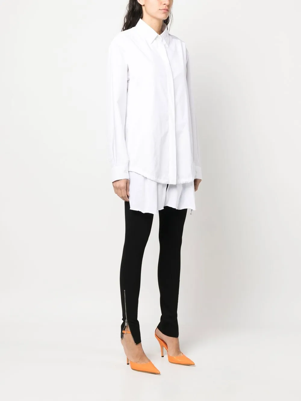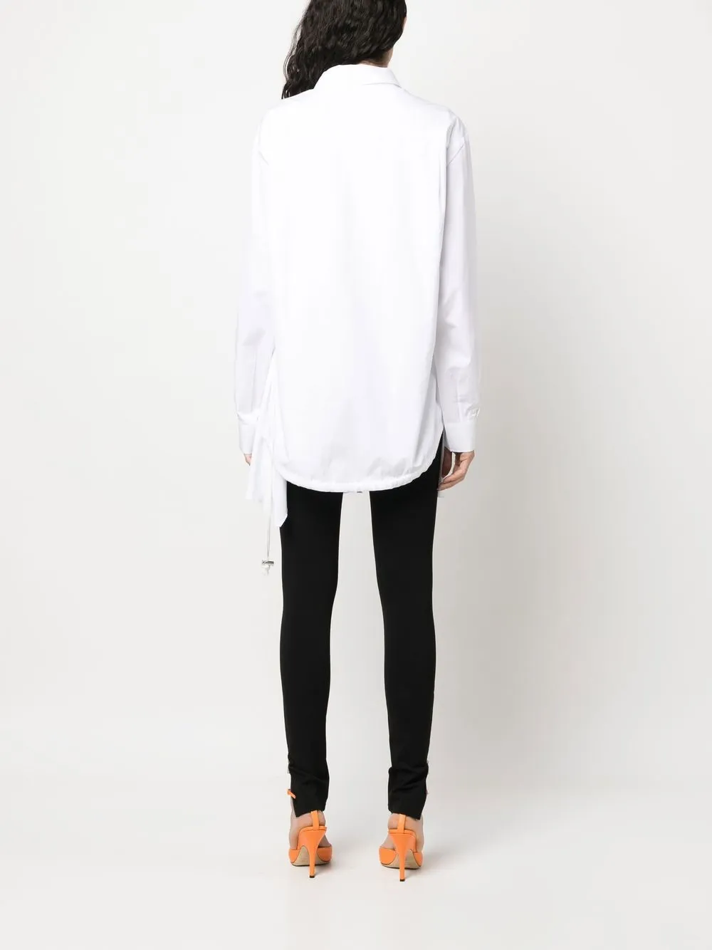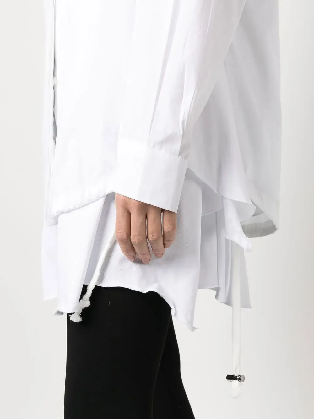 Белый, хлопок, воротник с вышитым логотипом, аппликация, классический воротник, застежка на пуговицах спереди, длинные рукава и манжеты на пуговицах.