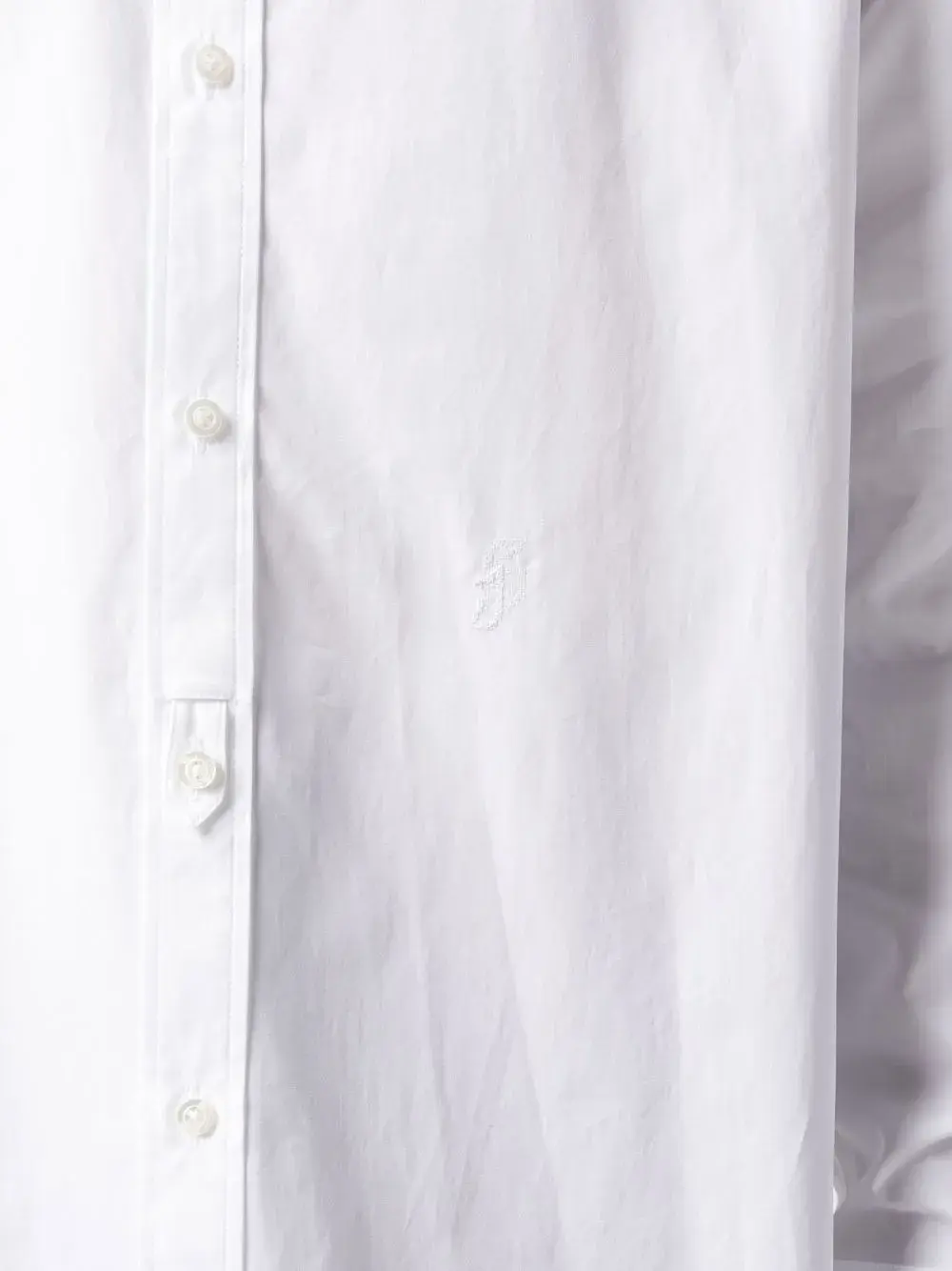 Белый, хлопок, застежка на молнии спереди, классический воротник, длинные рукава и закругленный подол.