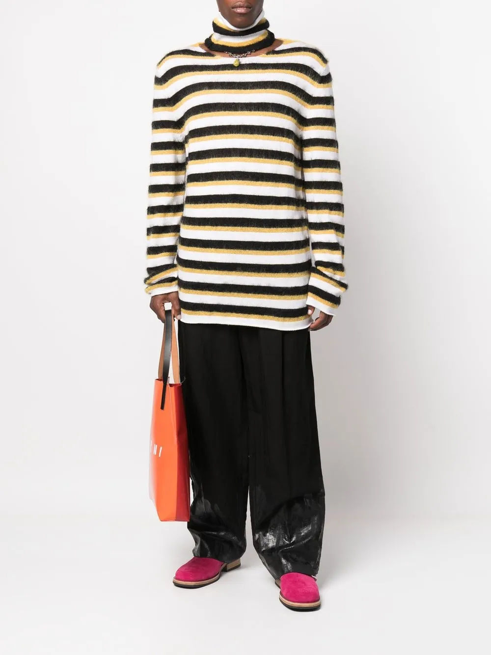 Полосатый джемпер с высоким воротником Marni, белый