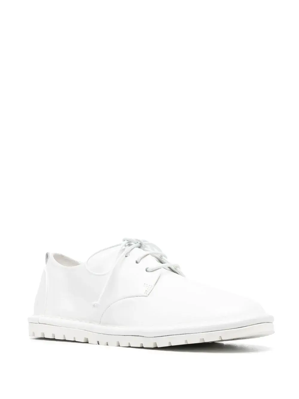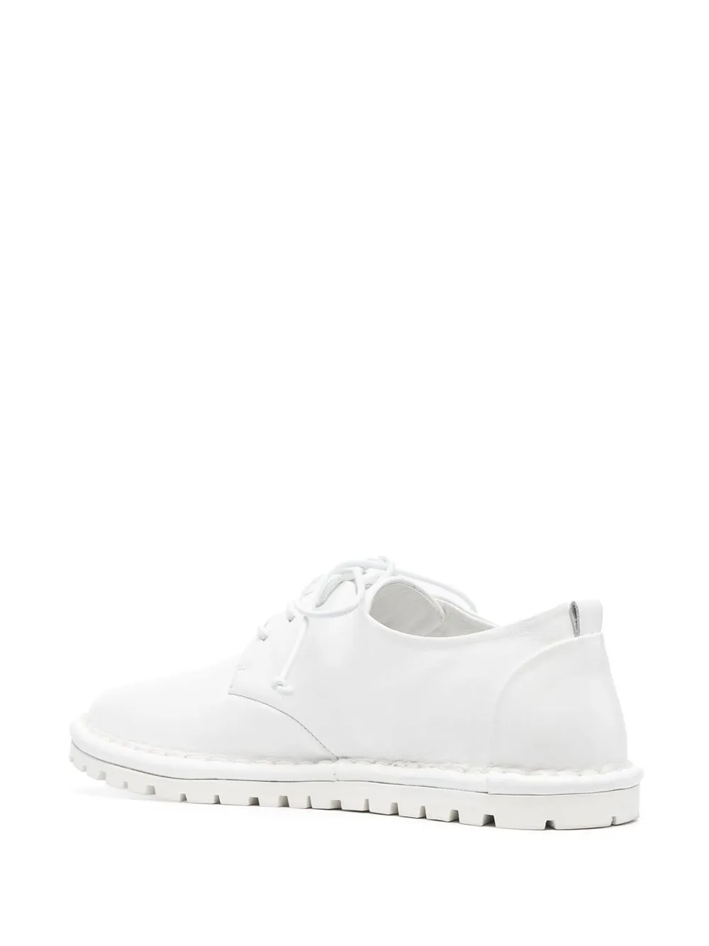 Белый, телячья кожа, однотонная расцветка, закругленный носок, шнуровка спереди, стелька с логотипом и рифленая резиновая подошва.