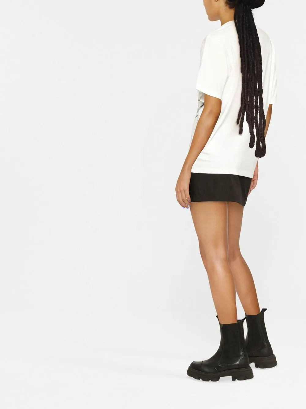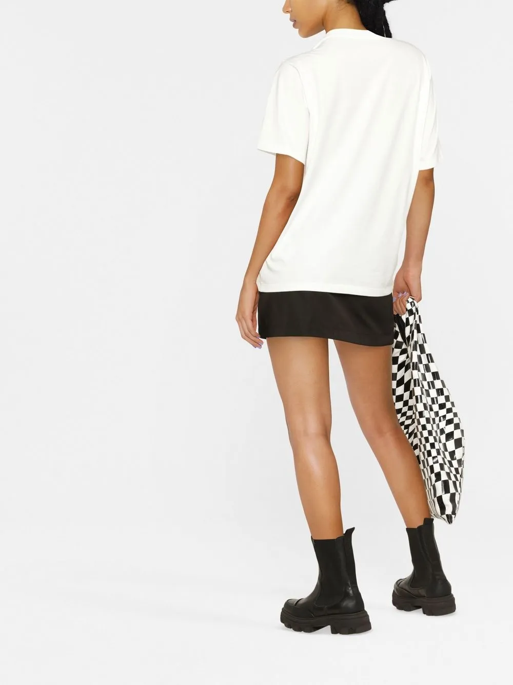 Белый/черный, хлопок, логотип спереди, круглый вырез, короткие рукава, строчка в тон и прямой подол.
