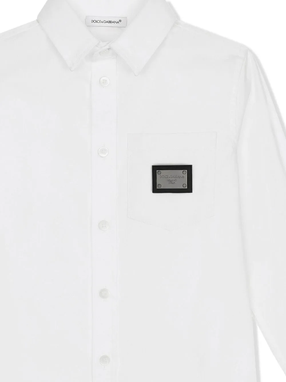 Поплиновая рубашка с логотипом Dolce & Gabbana Kids, белый