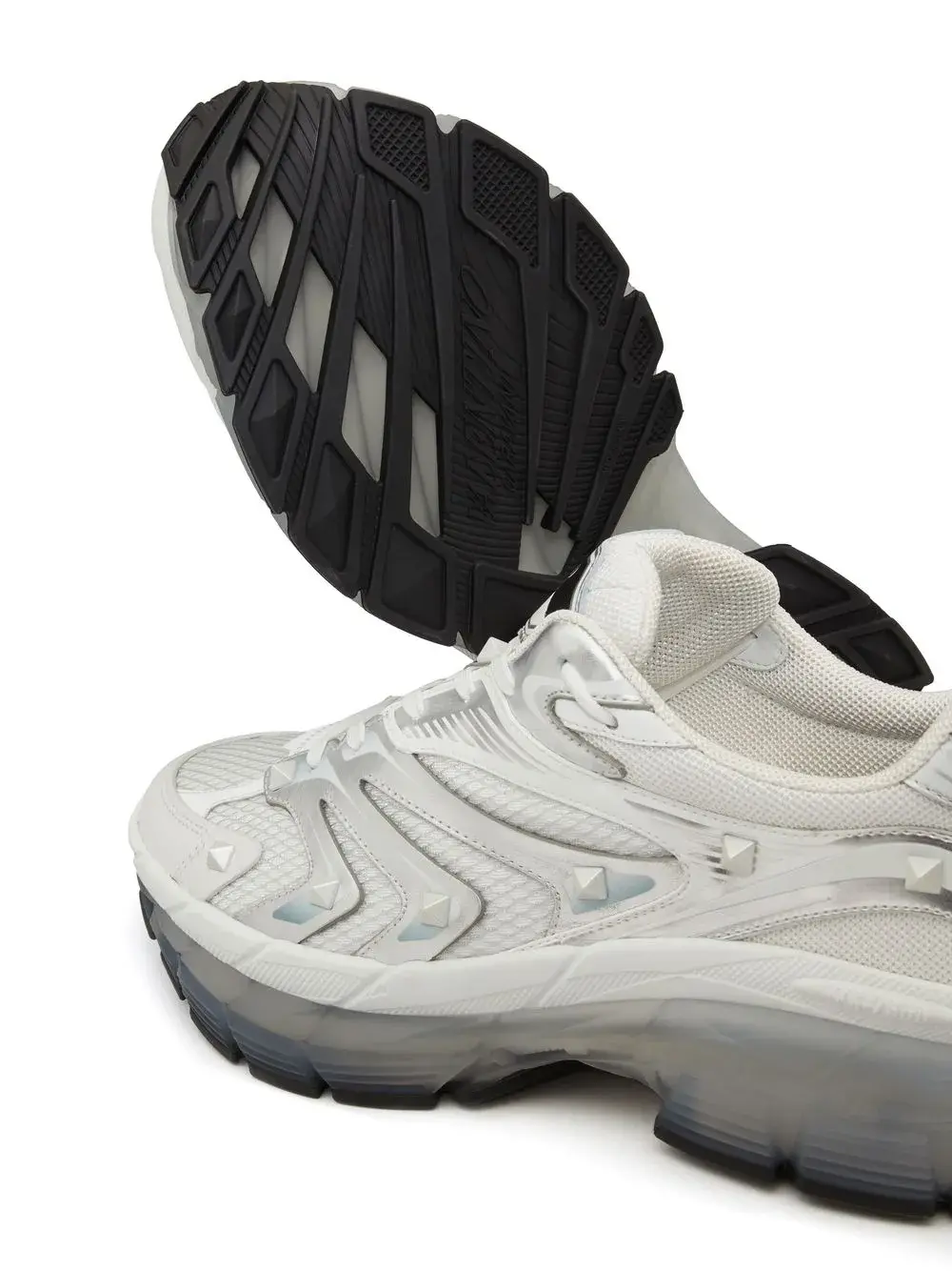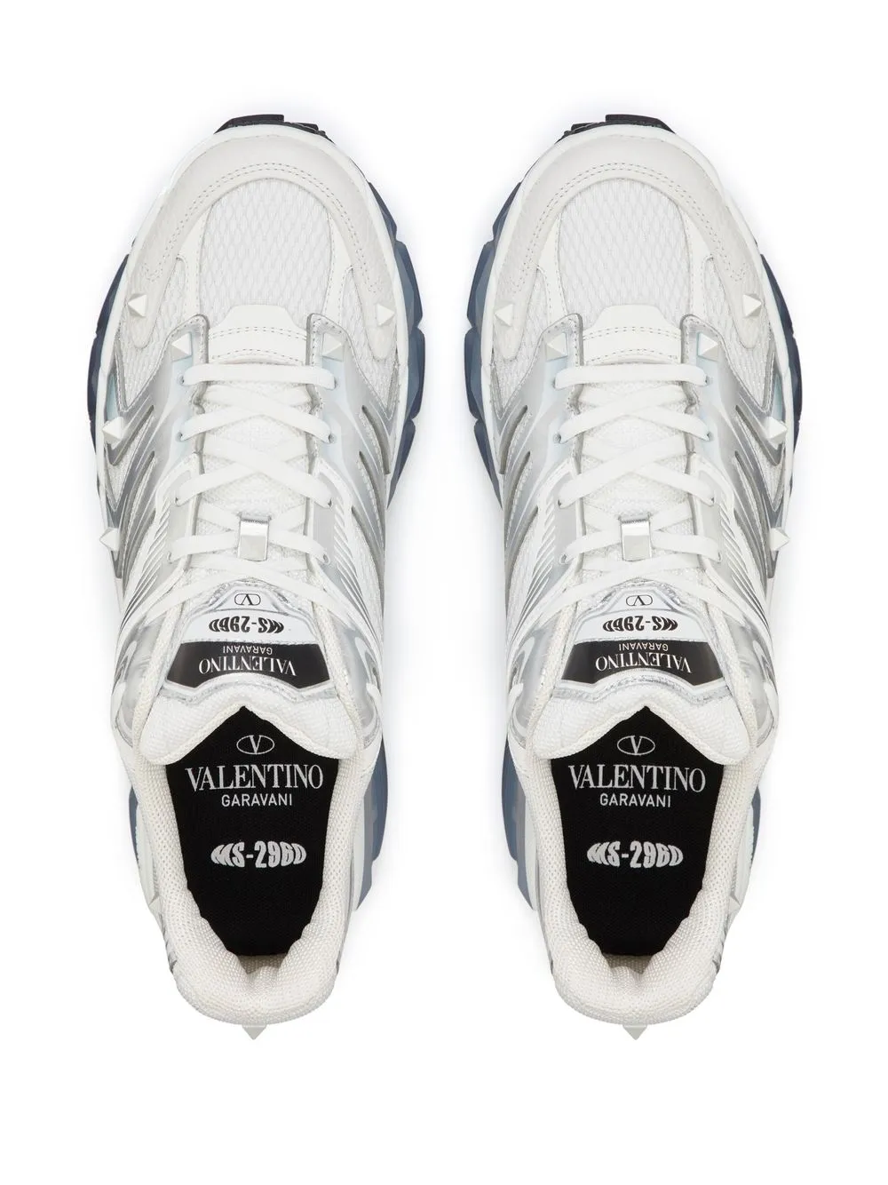 Белый, кожа, заклепки Rockstud, шнуровка спереди, закругленный носок, массивная резиновая подошва, язычок с логотипом и стелька с логотипом.