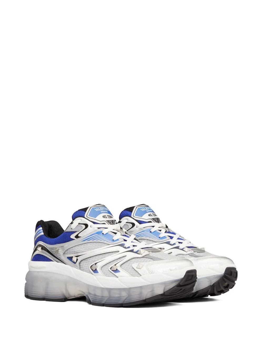 Синий/белый, телячья кожа, вставки, заклепки Rockstud, нашивка с логотипом на язычке, шнуровка спереди, сетчатые вставки и массивная резиновая подошва.