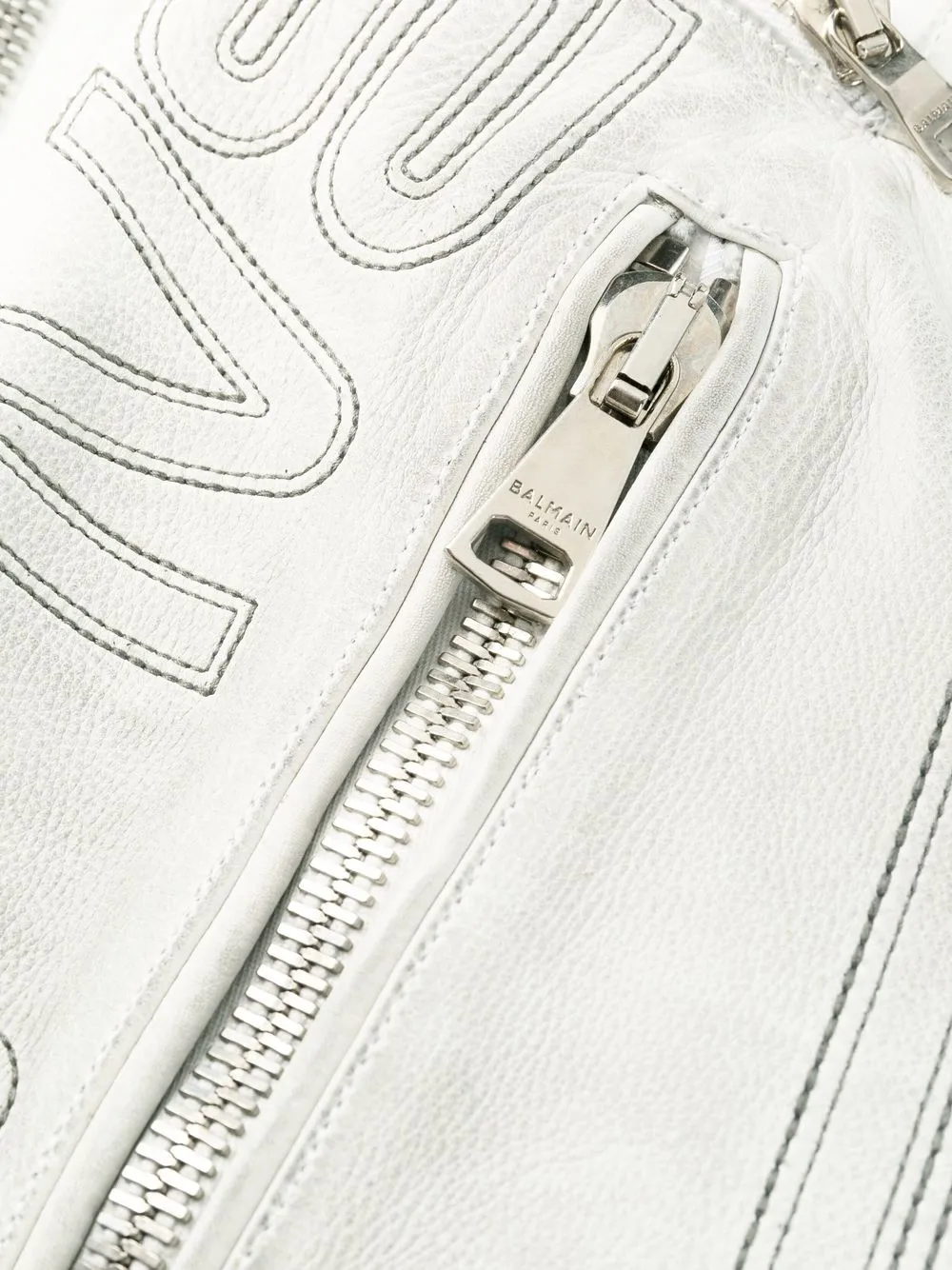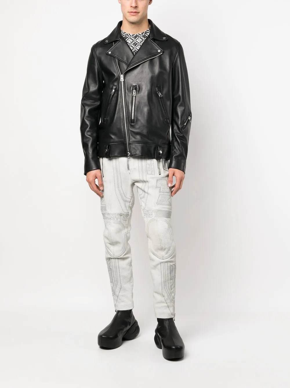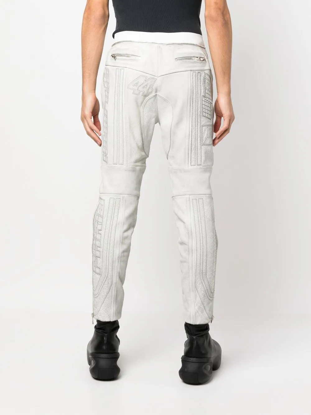 Зауженные кожаные брюки с вышивкой BALMAIN, белый