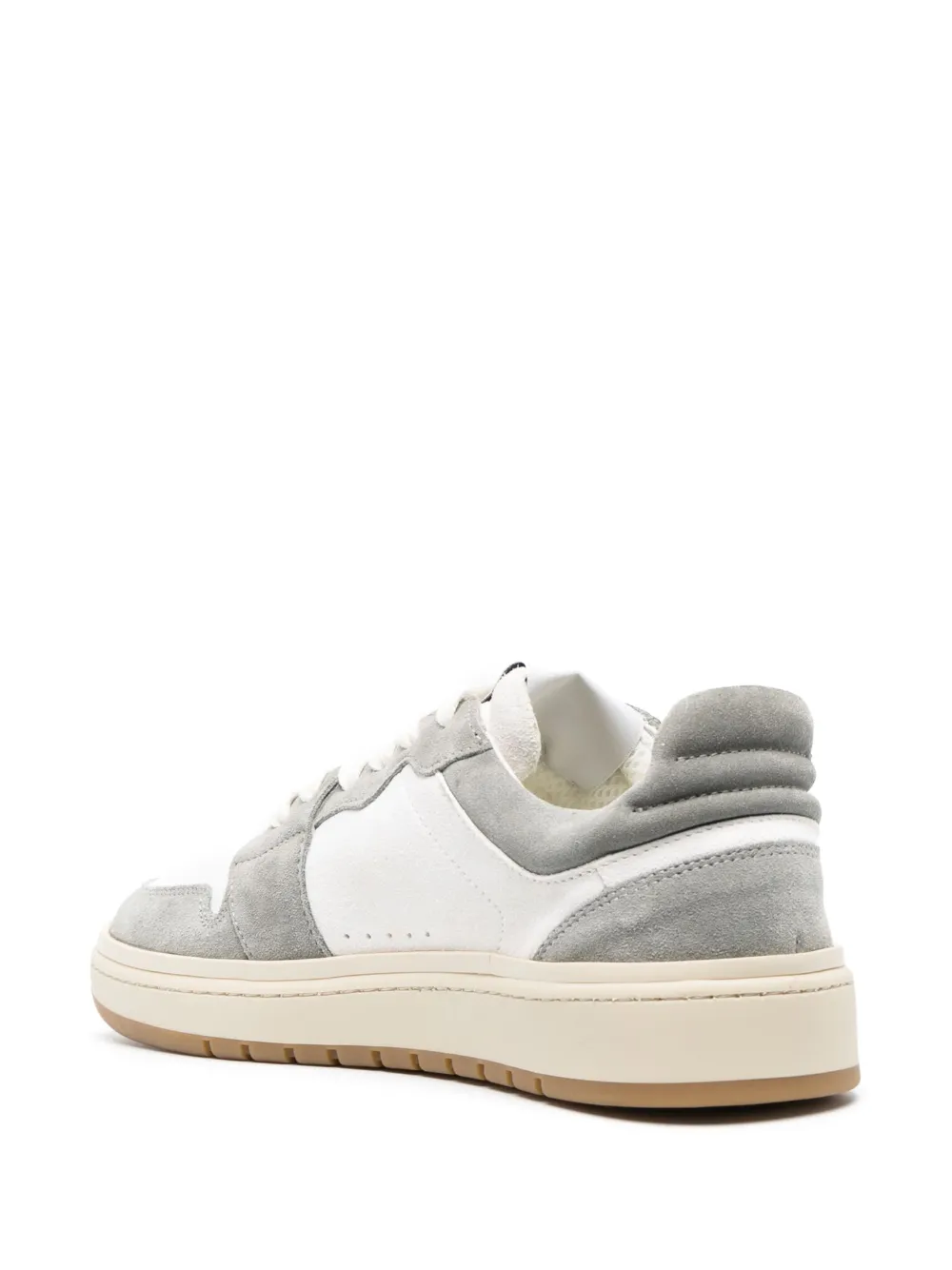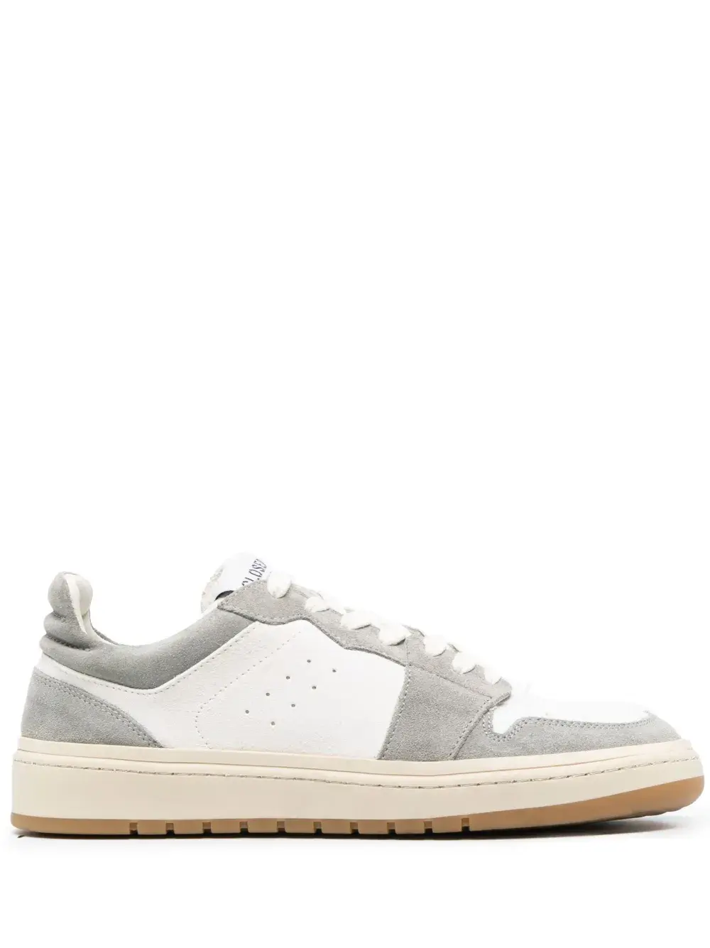 Телячья кожа, вставки, нашивка с логотипом на язычке, перфорация, шнуровка спереди, плоская резиновая подошва и закругленный носок.