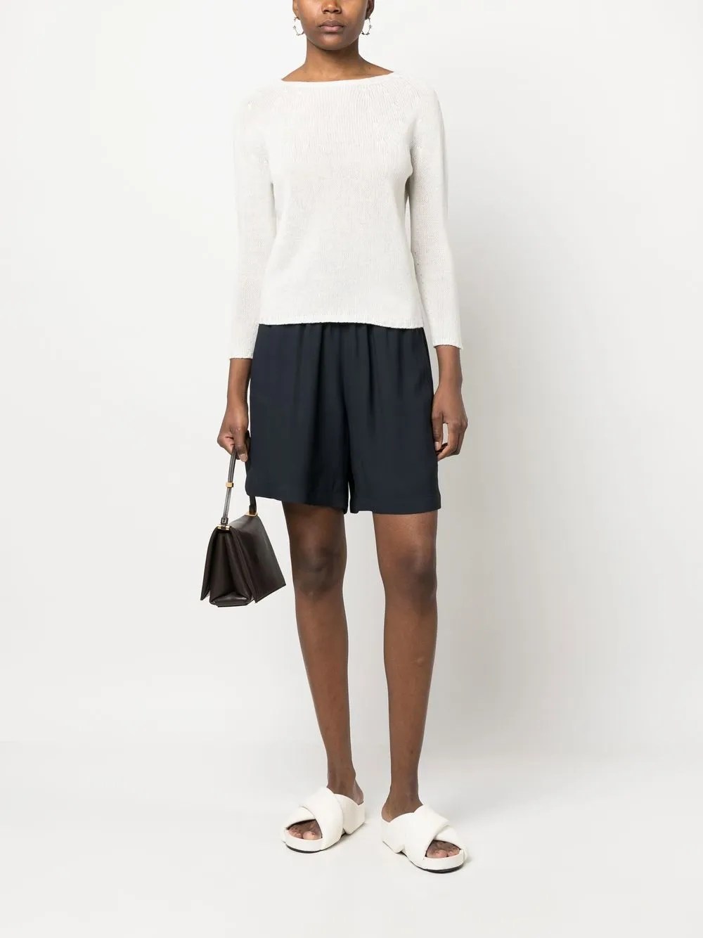 Белый, кашемир, трикотаж в рубчик, круглый вырез, длинные рукава и прямой подол.