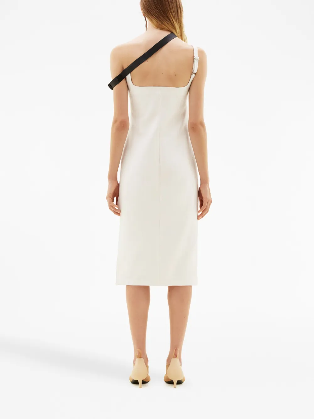 Белый, смесовый хлопок, квадратный вырез, без рукавов, прямой подол и длина миди.