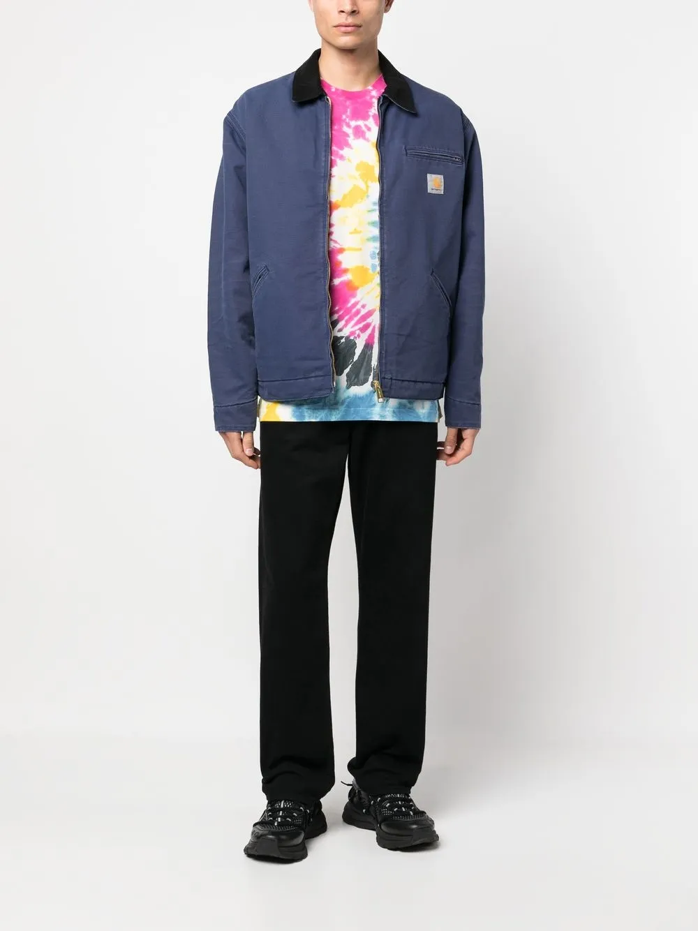 Разноцветный, хлопок, принт тай-дай, круглый вырез, короткие рукава, прямой подол и логотип на подоле.