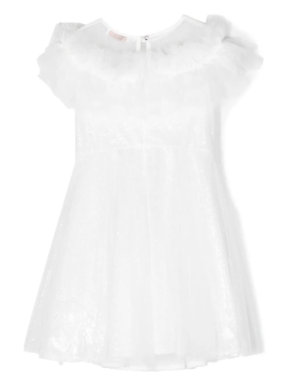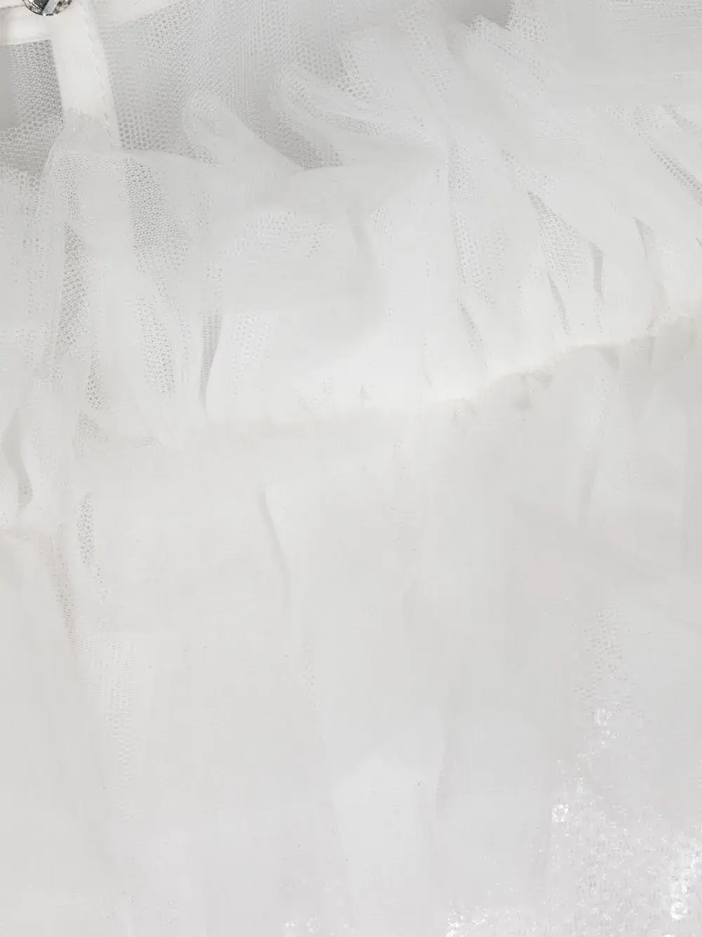 Расцветка Аrarat White, белый, хлопок, сетчатый тюль, модель с оборками, круглый вырез и короткие рукава.