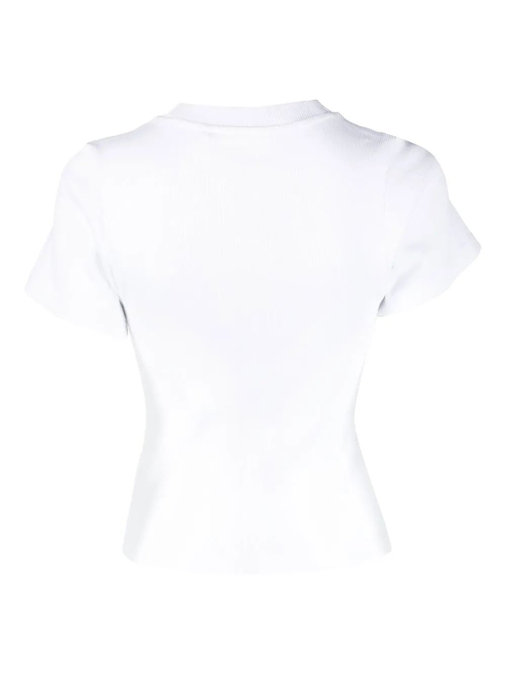 Белый, органический хлопок, эластичный материал, вышитый логотип на груди, круглый вырез, короткие рукава и прямой подол. Ответственный выбор: В составе этого товара есть органический хлопок. Его производитель не использует химические вещества, пестициды и искусственные удобрения и внедряет методы, которые помогают сохранить биоразнообразие, улучшают качество почвы и сокращают потребление воды.