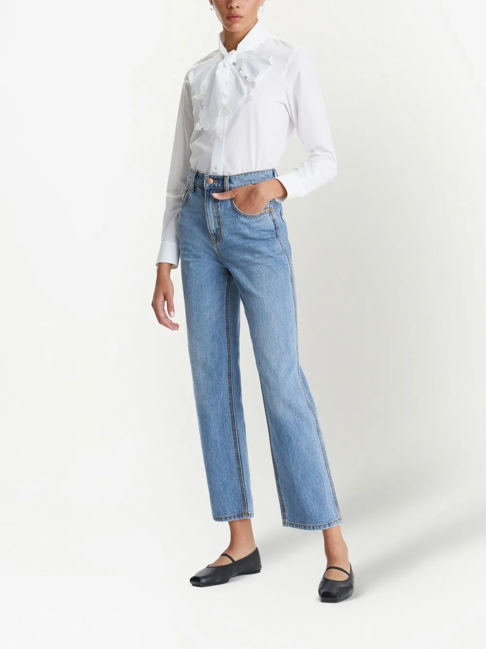 Поплиновая блузка с фестонами Tory Burch, белый 78 671₽
