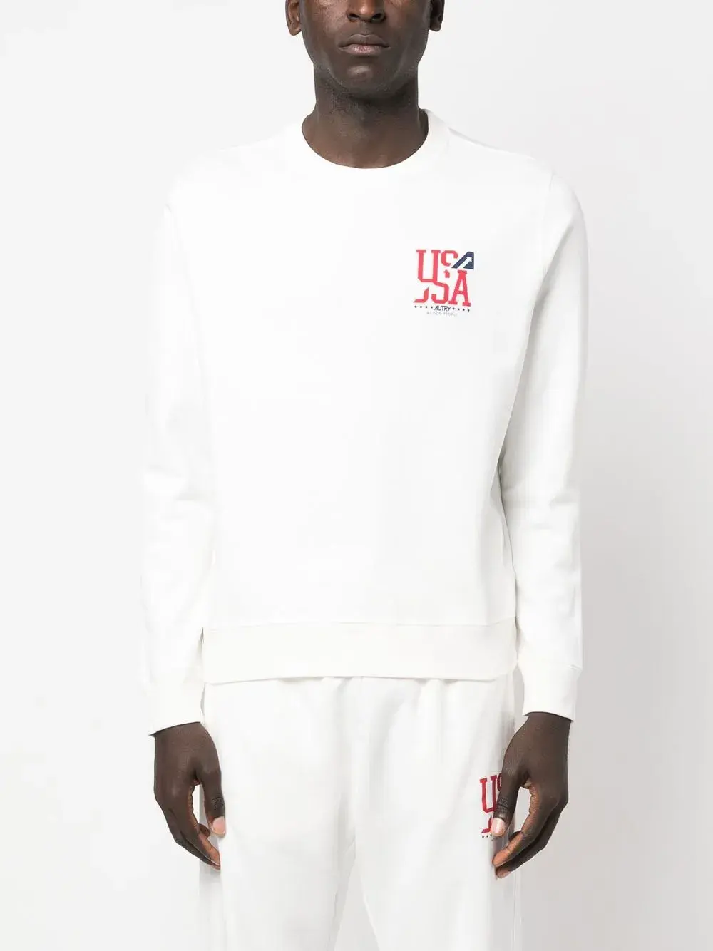 Красный/белый/синий, хлопок, принт с логотипом на груди, принт с логотипом сзади, круглый вырез, длинные рукава и прямой подол.