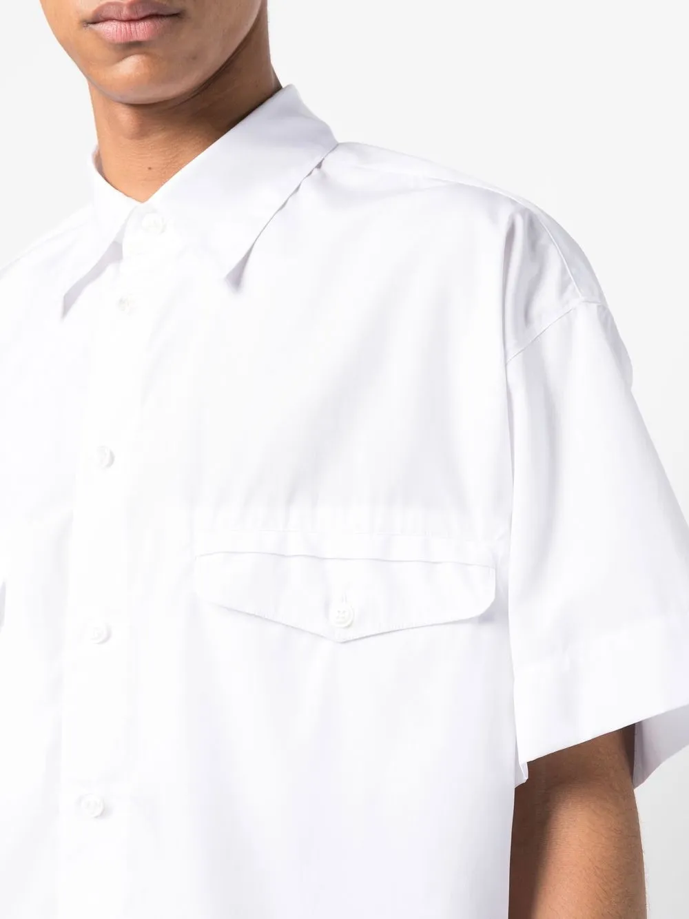 Расцветка Cloud White, хлопок, классический воротник, застежка на пуговицах спереди, короткие рукава, два нагрудных кармана с клапанами и прямой подол.
