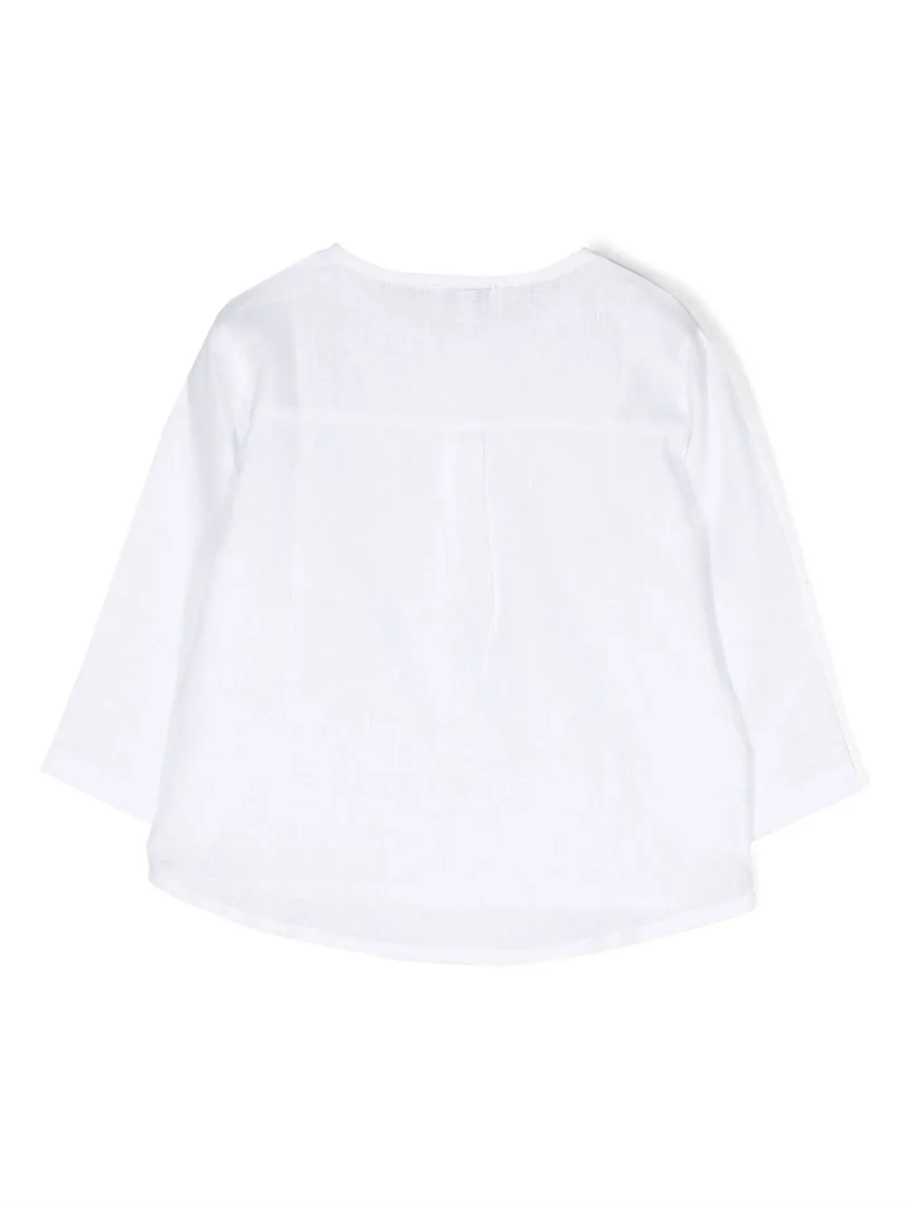Подробнее о товаре: Белый, лен, круглый вырез, короткая застежка на пуговицах спереди, длинные рукава и закругленный подол сзади. Этот товар как минимум на 50% состоит из материалов, которые признаны более безопасными для окружающей среды, и/или произведены с использованием методов, которые помогают сократить потребление воды и химических веществ. Узнать больше о том, какие товары получают отметку «Ответственный выбор», можно из материала «Как мы оцениваем экологичность и этичность».