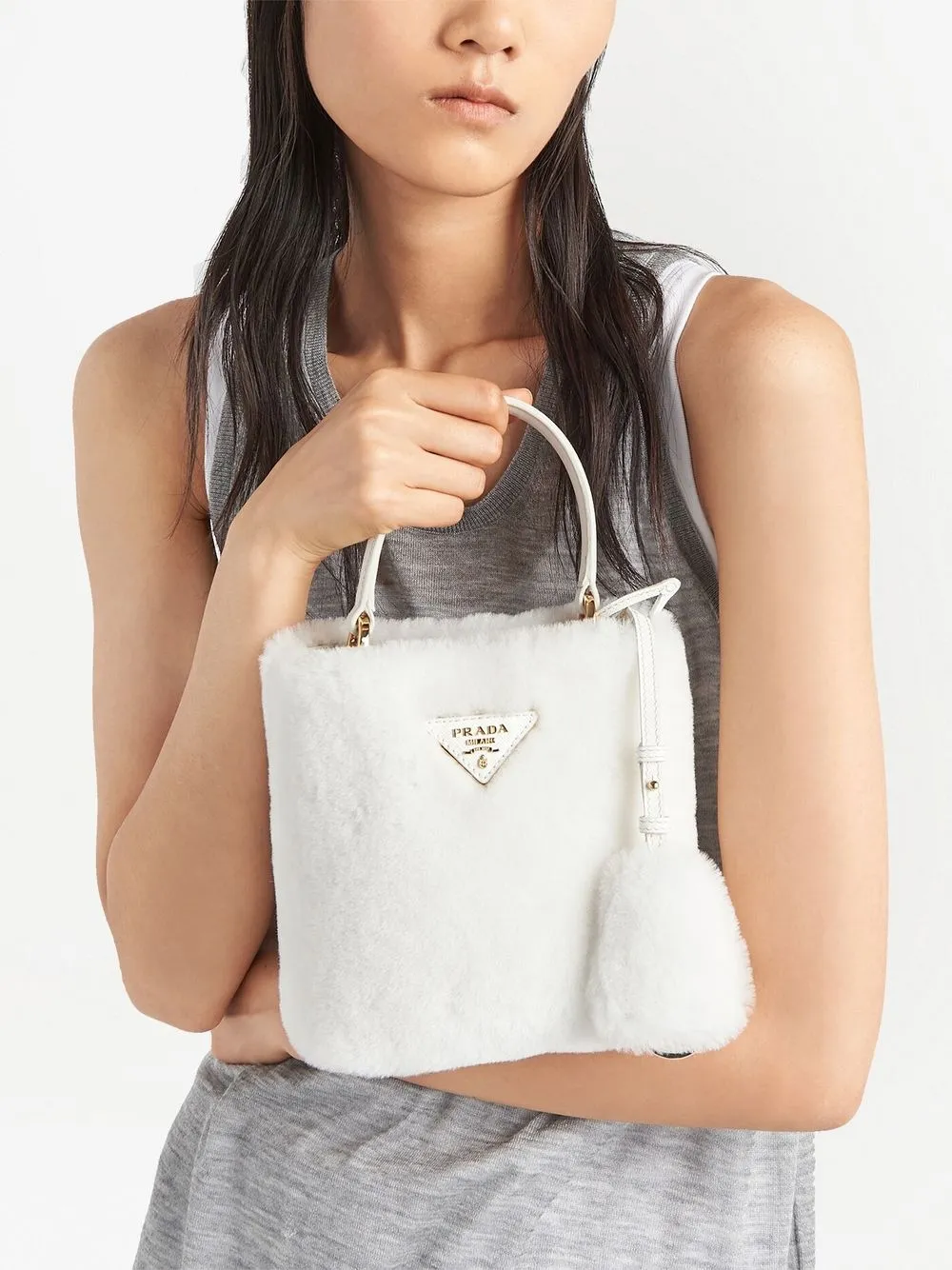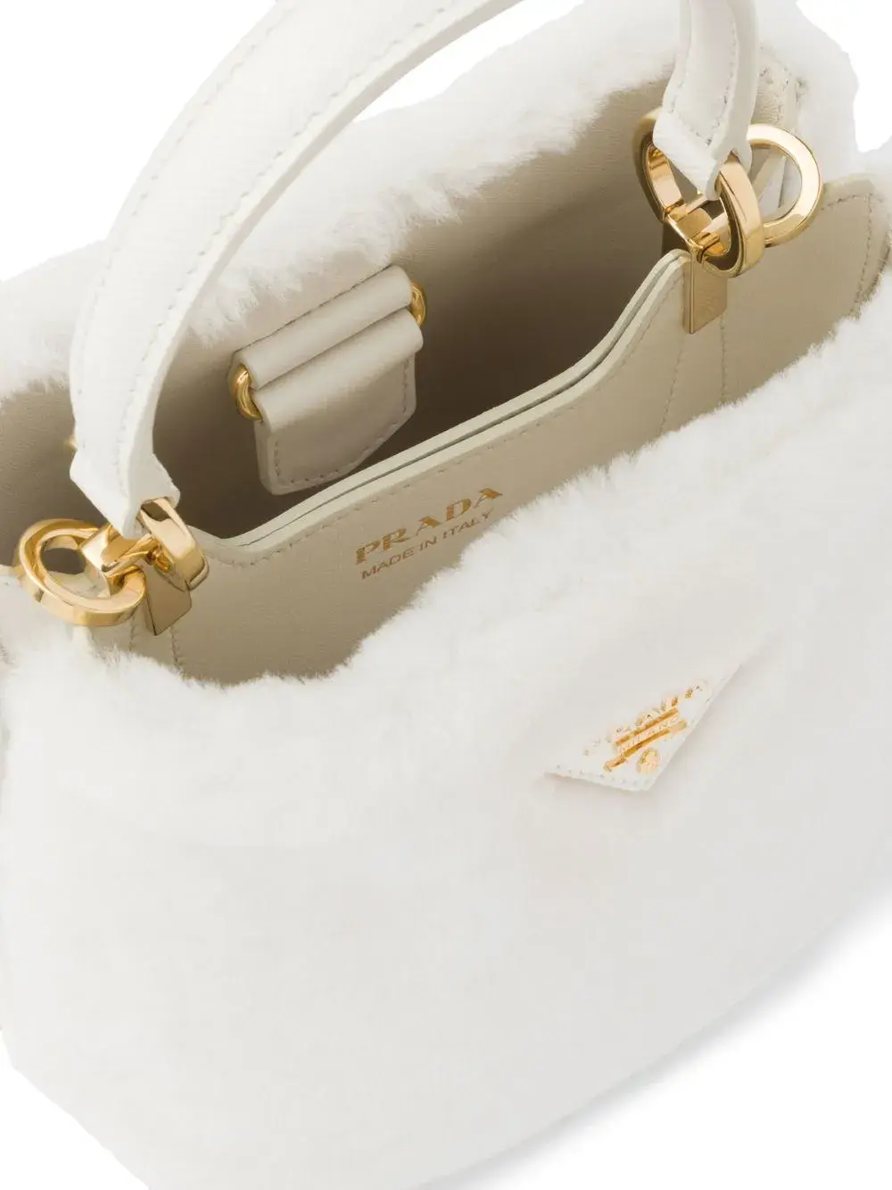 Сумка-тоут Mini Panier из овчины Prada, белый