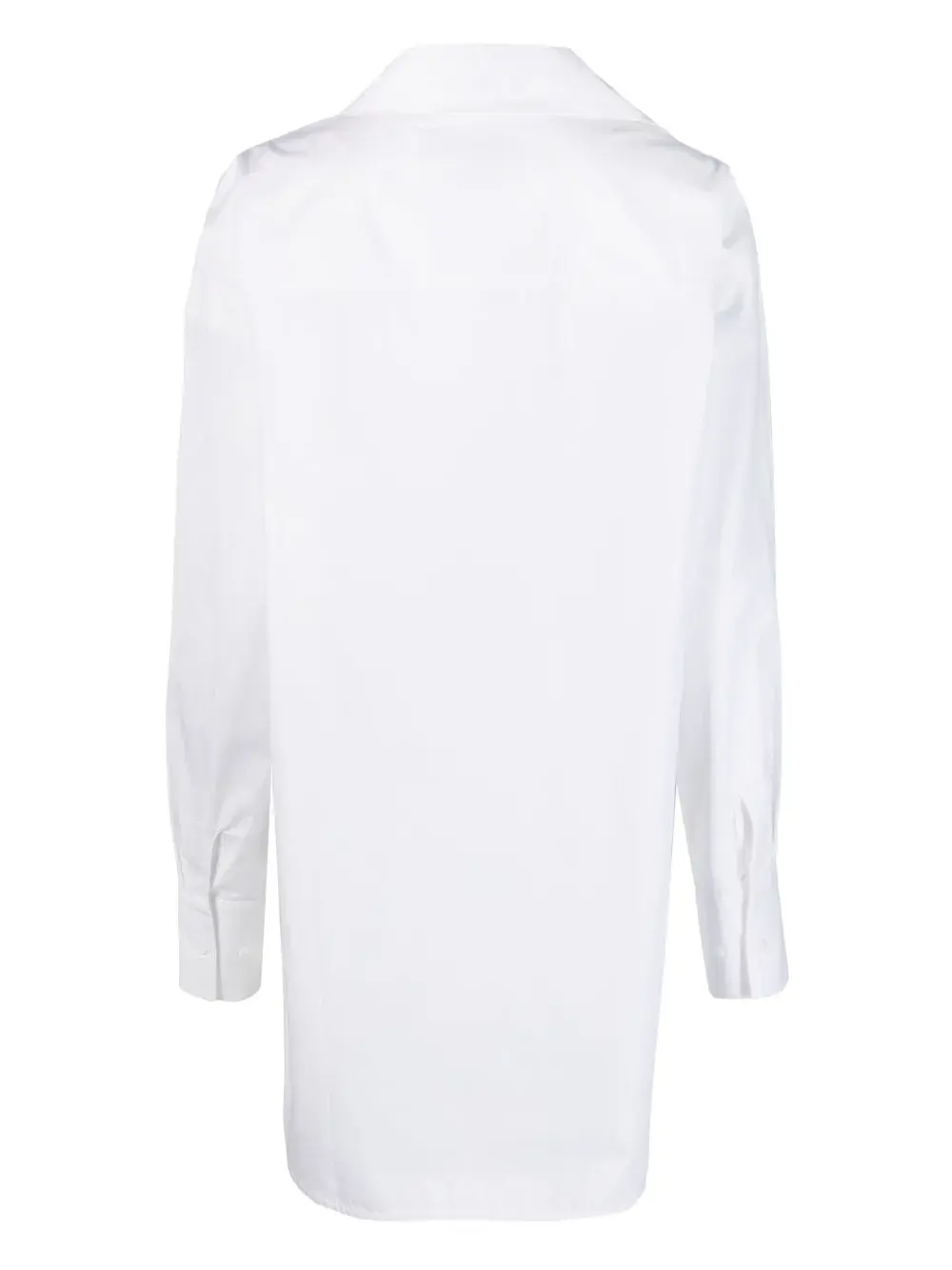 Белый, хлопок, классический воротник, двубортная застежка на кнопки, рукава с манжетами на пуговицах, длинные рукава и прямой подол.