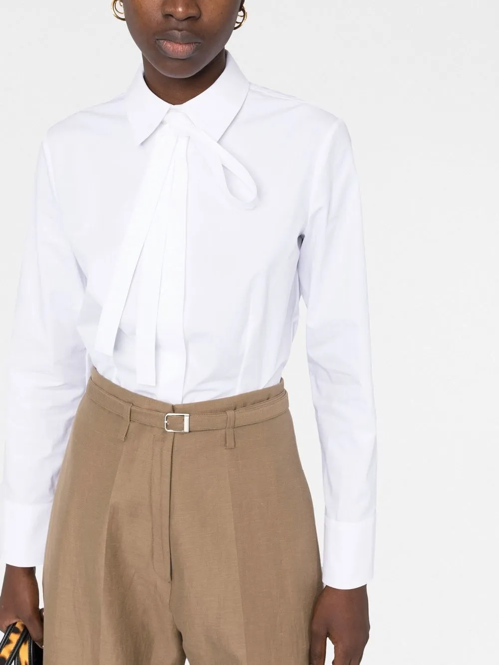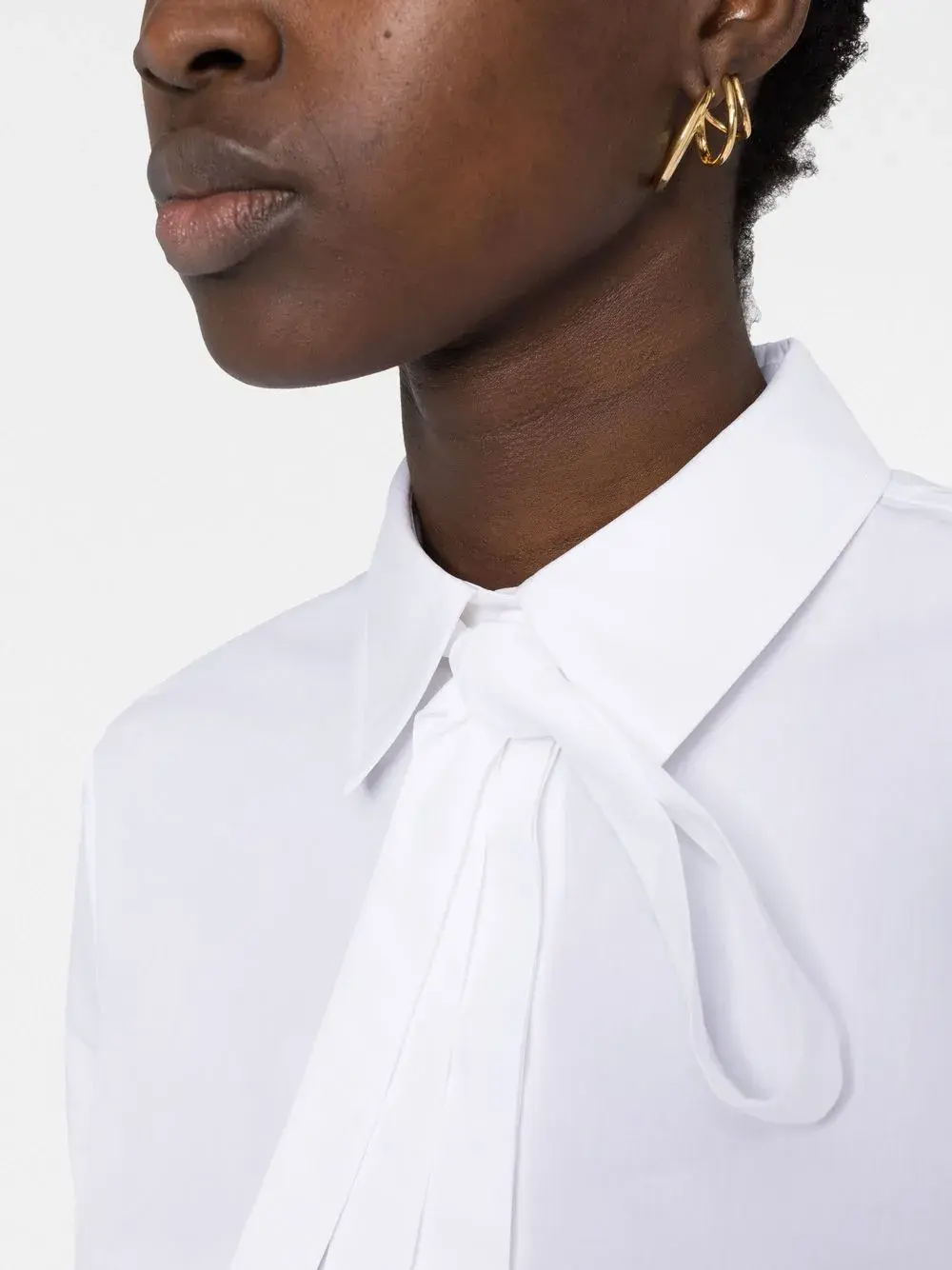 Коллекция Valentino Ready To Wear, белый, хлопок, поплин, воротник с бантом, застежка на пуговицах спереди и манжеты на пуговицах.