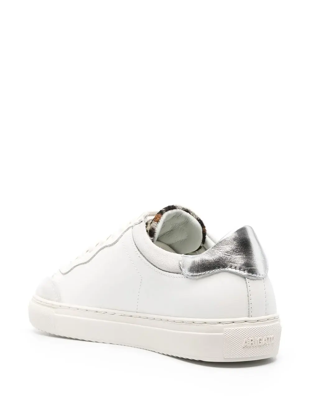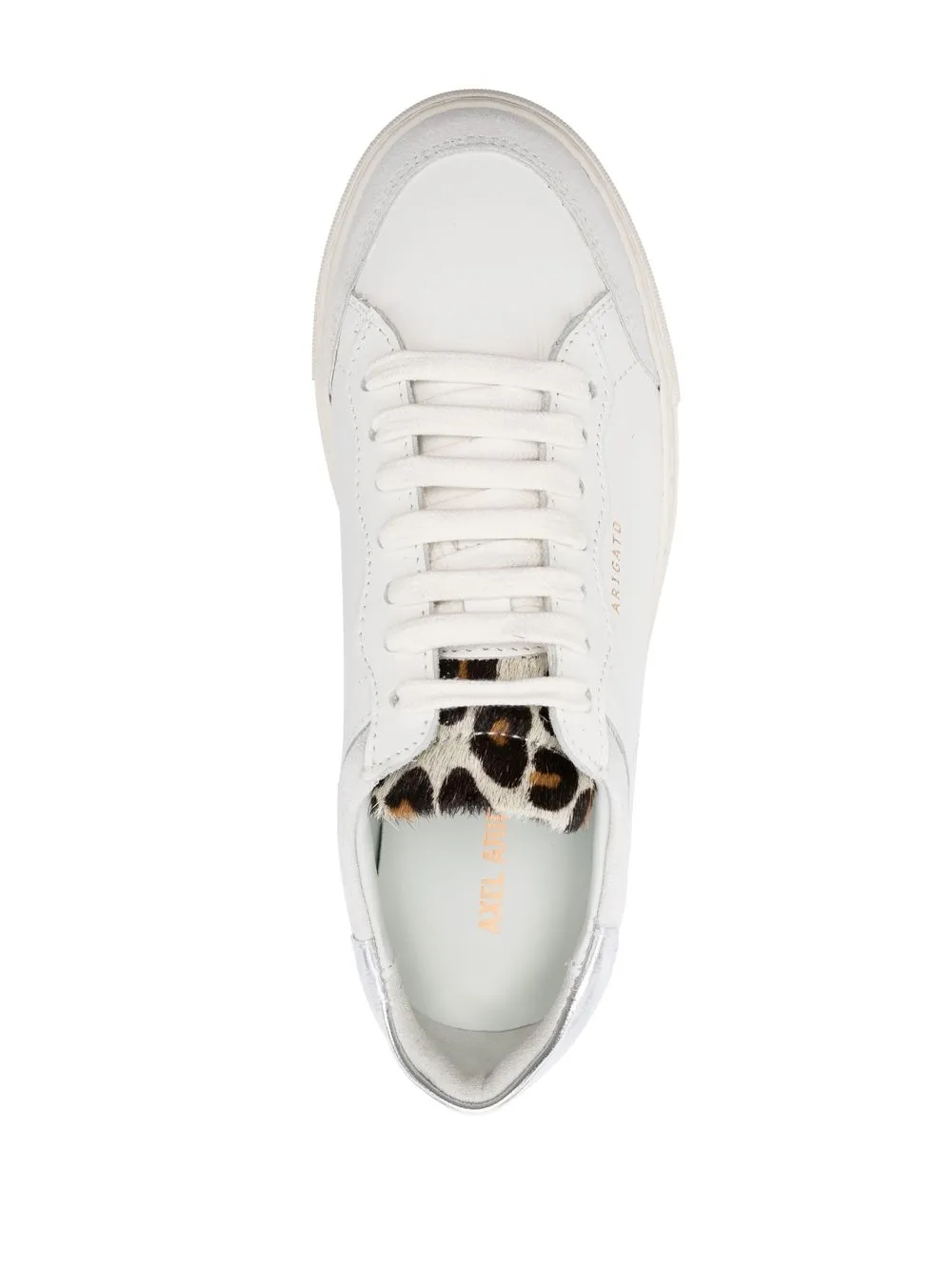 Белый, телячья кожа, леопардовый принт, контрастный задник, золотистый логотип, логотип сбоку, закругленный носок, шнуровка спереди и плоская резиновая подошва.