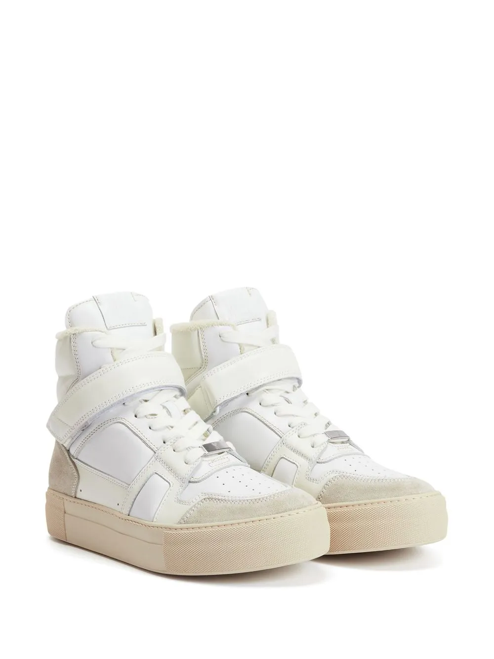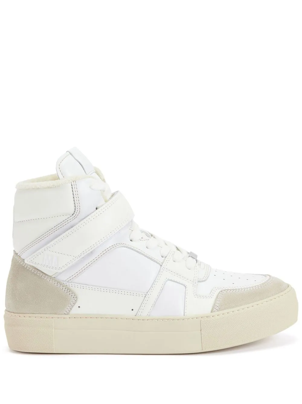 Кремово-белый, телячья кожа, знаковая монограмма Ami de Coeur, вставки, закругленный носок, перфорированный носок, шнуровка спереди, застежка на липучке спереди и плоская резиновая подошва.
