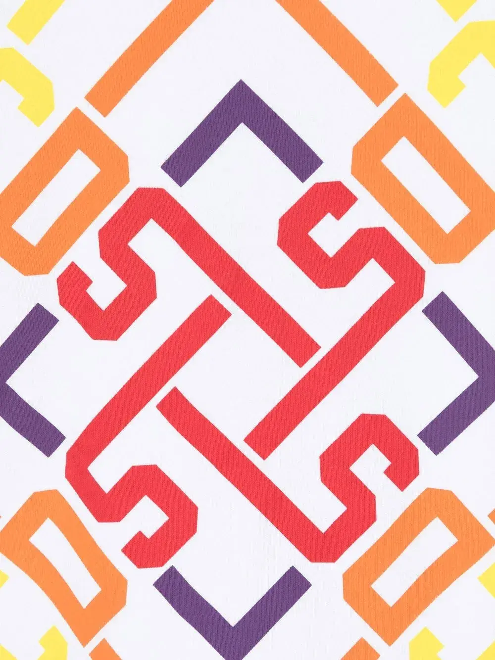 Белый/разноцветный, хлопок, сплошной принт с логотипом, классический капюшон, приспущенные плечи, длинные рукава, манжеты в рубчик и необработанный подол.