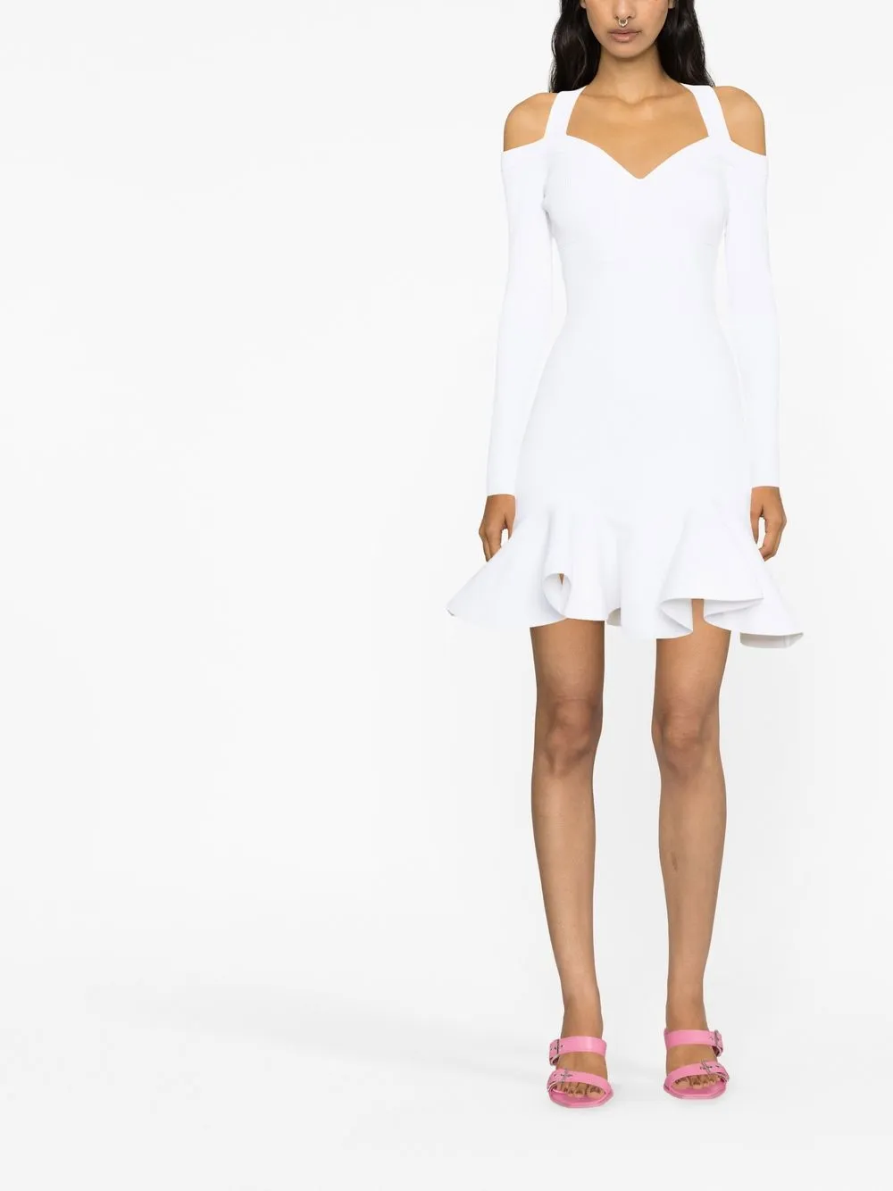 Трикотажное платье мини с V-образным вырезом Alexander McQueen, белый