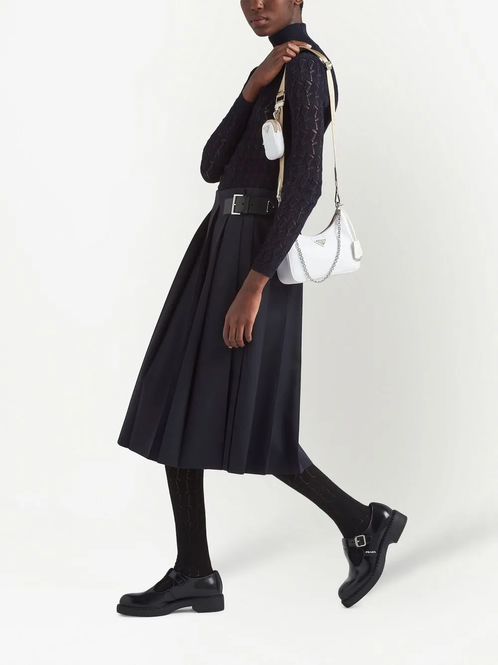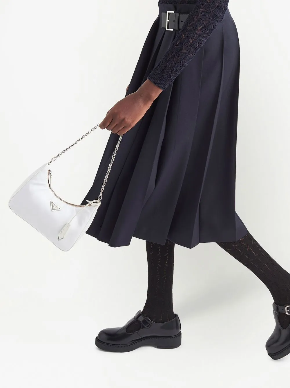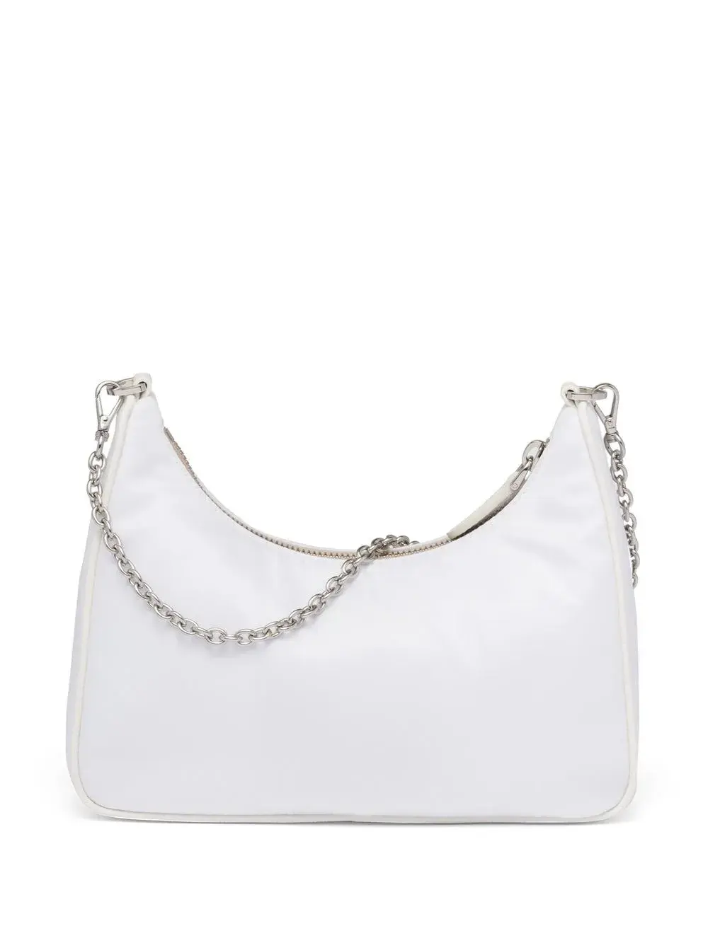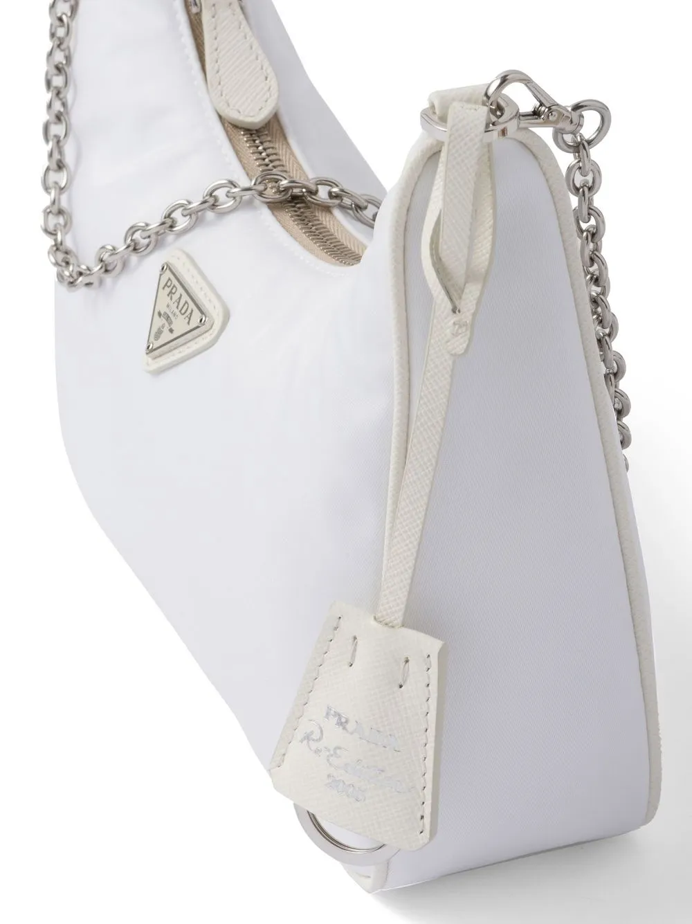 Подробнее о товаре: Белый, переработанный нейлон, треугольный эмалированный логотип, бирка с логотипом, цепочный ремень, съемный регулируемый ремень на плечо, серебристая фурнитура, застежка на молнии сверху, основное отделение и съемная косметичка. Этот товар как минимум на 50% состоит из переработанных или повторно использованных материалов. Узнать больше о том, какие товары получают отметку «Ответственный выбор», можно из материала «Как мы оцениваем экологичность и этичность».